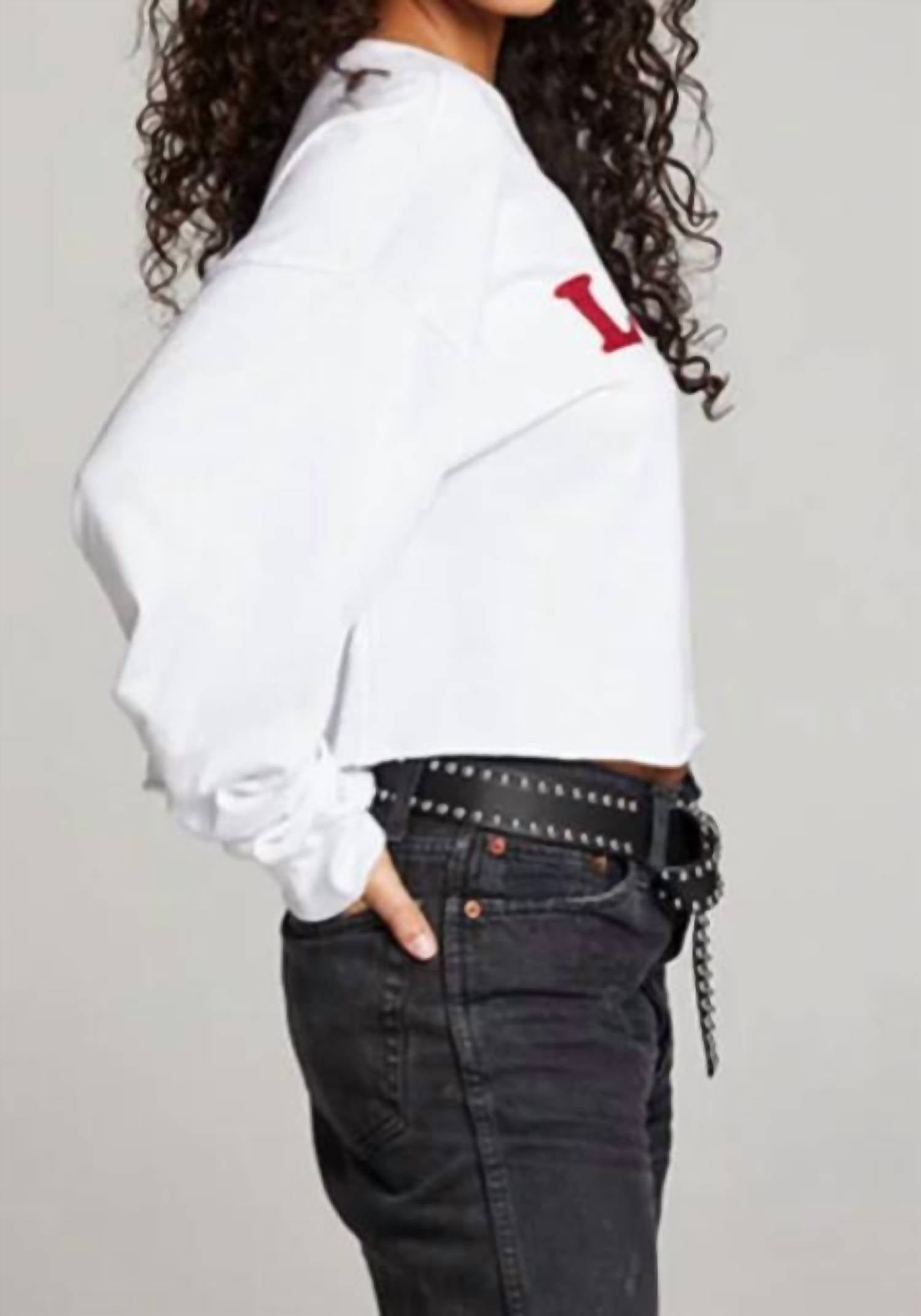Длинный рукав, который можно носить с джинсами, юбками, ну... практически с чем угодно! Длинный рукав, плотная белая хлопковая футболка с надписью LOVER красного цвета. Необработанный край для дополнительного акцента. Немного свободный крой. 100% хлопок Машинная стирка в холодной воде