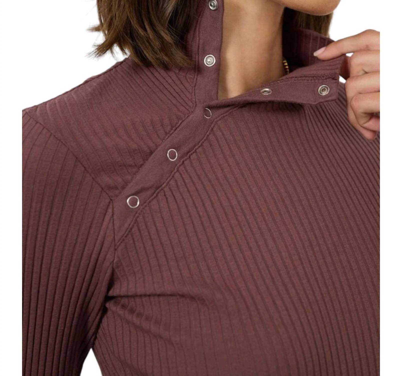 Слегка приталенная водолазка с длинными рукавами для изысканного силуэта. Регулируемый вырез на кнопке для универсального стиля. Изготовлена из плоской рубчатой ткани для подчеркивания фигуры. Изготовлена из 50% хлопка Supima и 50% микромодала.