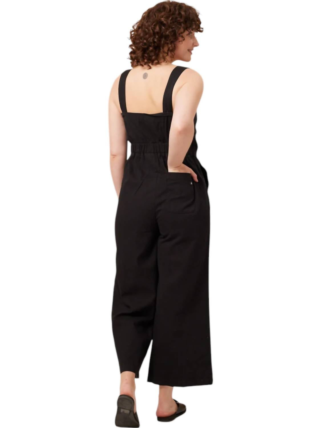 Идеальное сочетание стиля и экологичности. Изготовлено из 100% органического хлопкового твила с сертификатом GOTS. Изделие с сертификатом Fair Trade является одновременно экологичным и шикарным. Застегивается на пуговицы и имеет функциональные передние и задние карманы. Комбинезон свободного кроя с широкими штанинами обеспечивает универсальность и практичность.