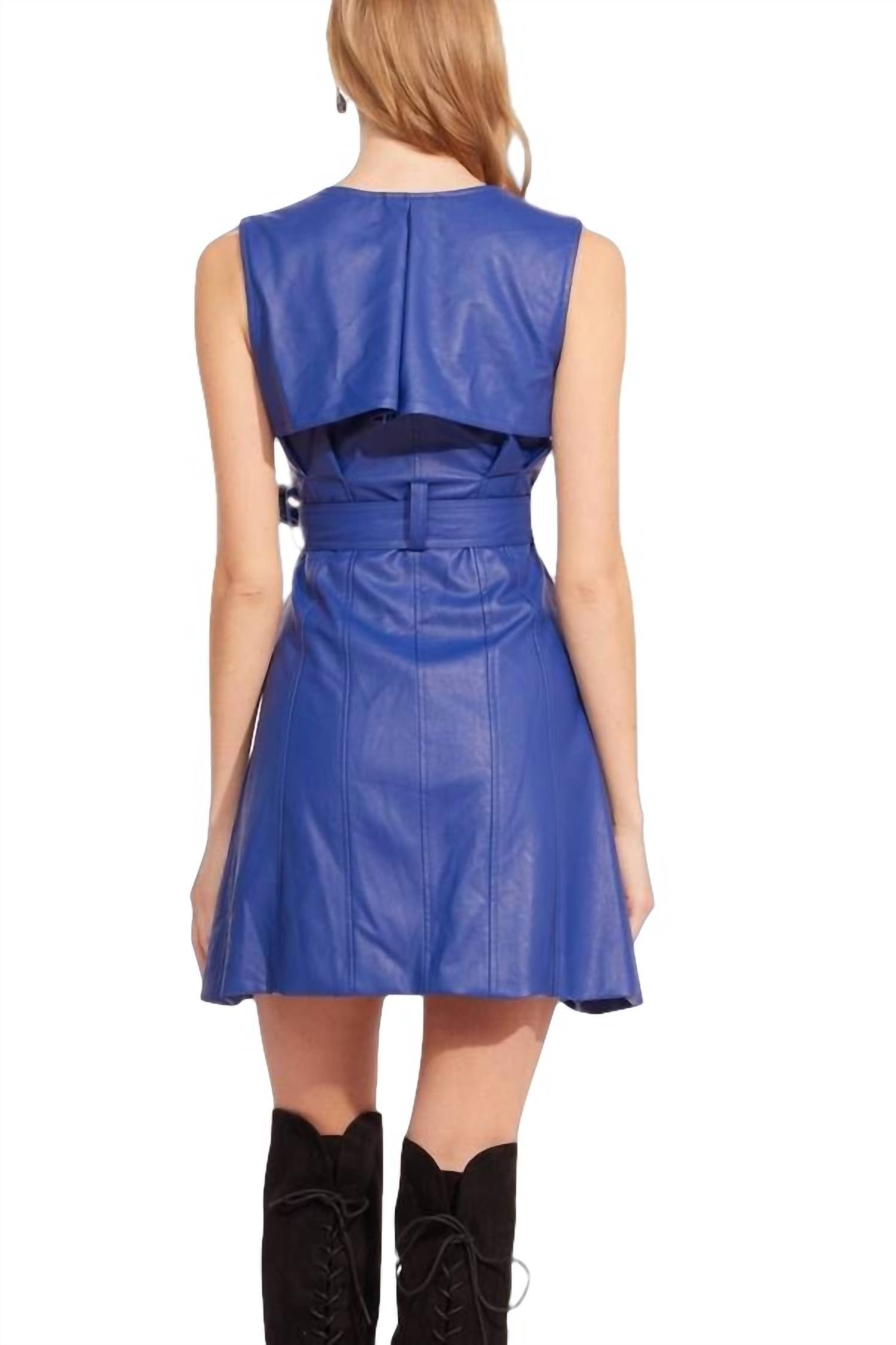 Платье из мягкой веганской кожи, облегающее и расклешенное, длиной выше колена. Молния сбоку. Завязывается на талии. V-образный вырез. Мягкая веганская кожа. Длина мини.
