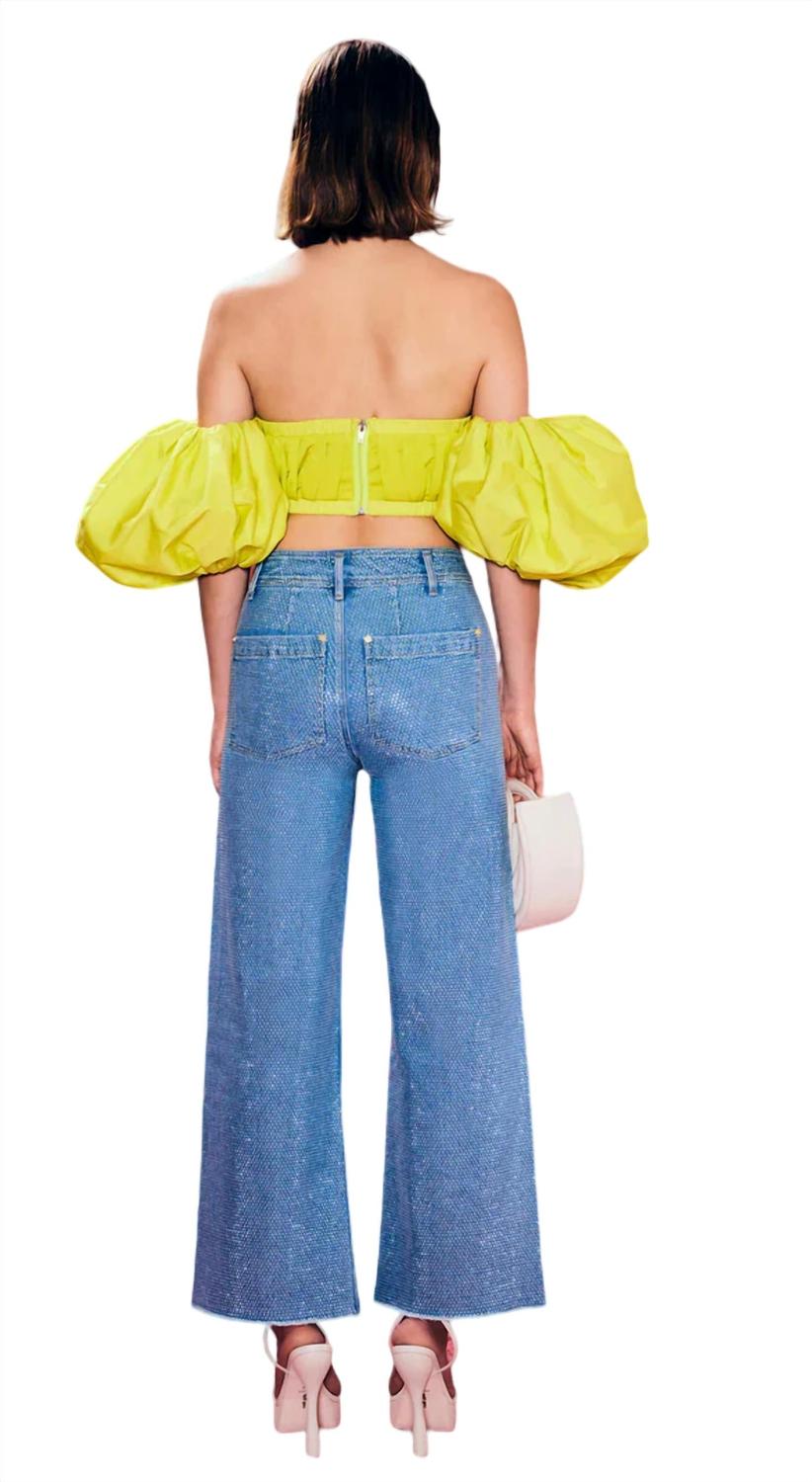 Топ Carly — укороченный топ с открытыми плечами и увеличенными рукавами-фонариками из эластичного хлопкового сатина цвета Citron с оборками. Полная центральная молния сзади обеспечивает легкость надевания. Эластичные края топа обеспечивают плотную посадку. Носите с брюками Zelma и платформой Elodie для придания дополнительного оттенка Gaia. Съемные рукава с застежкой на пуговицы. 97% полиэстер, 3% спандекс. Соответствует размеру.