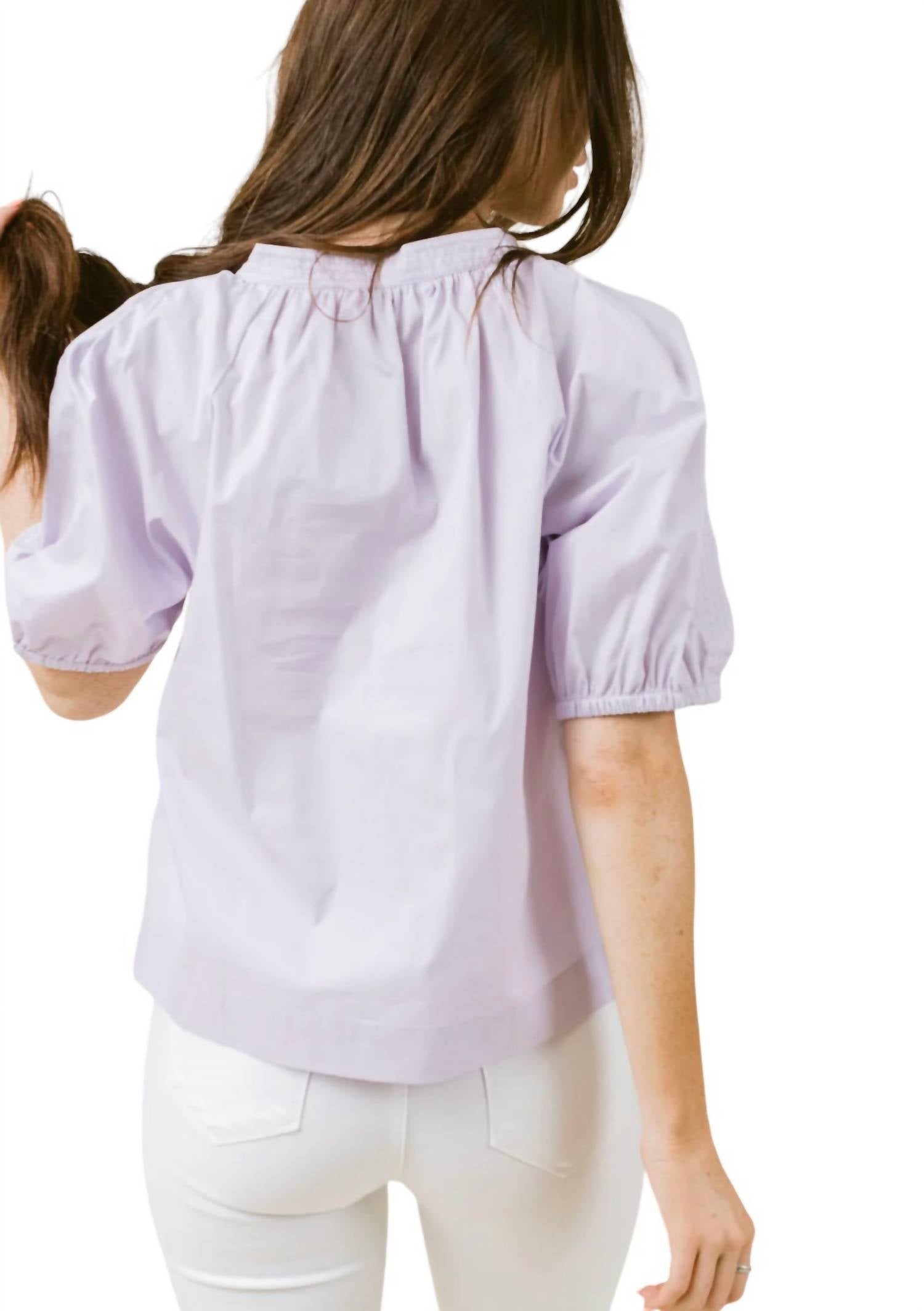 Эта блузка имеет рукава до локтя с эластичными манжетами, открытый вырез и свободный крой. Она изготовлена из легкой хлопковой вуали, что обеспечивает ощущение свежести и комфорта. Только сухая чистка.