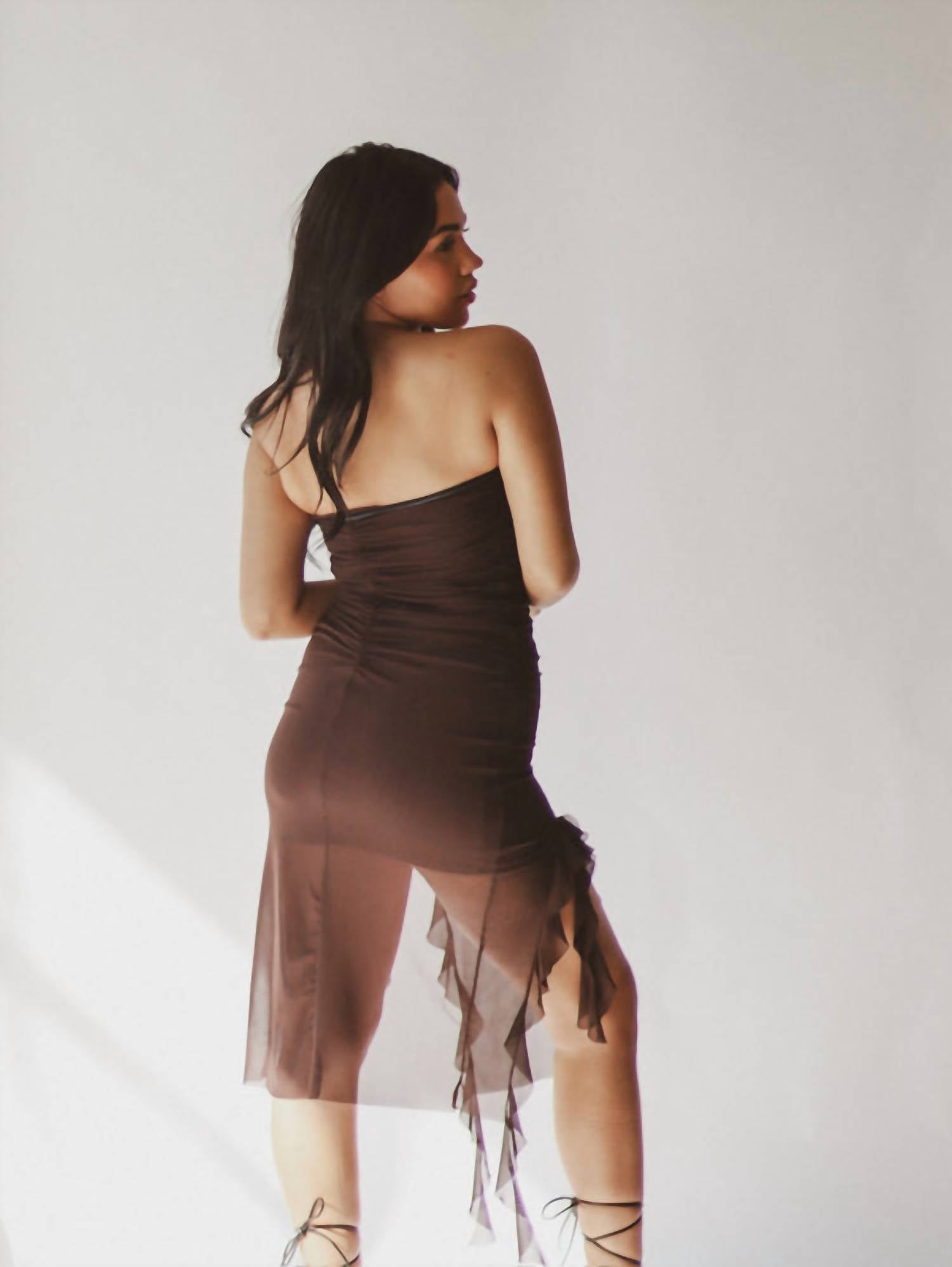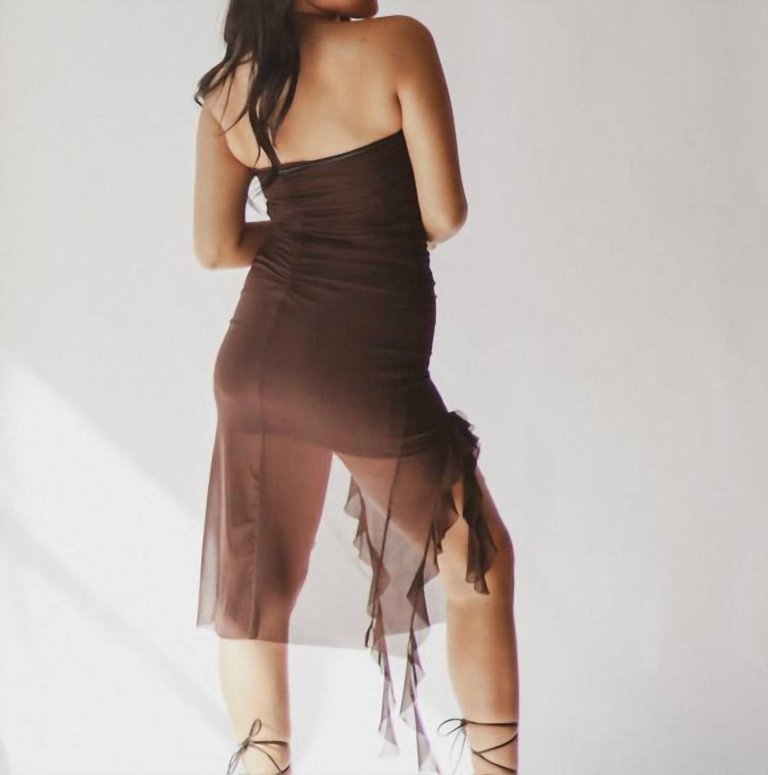 Это мини-платье с рюшами демонстрирует модные детали с оборками и облегающий дизайн без бретелек. Изготовлено из 80% полиэстера, 16% вискозы и 4% спандекса.