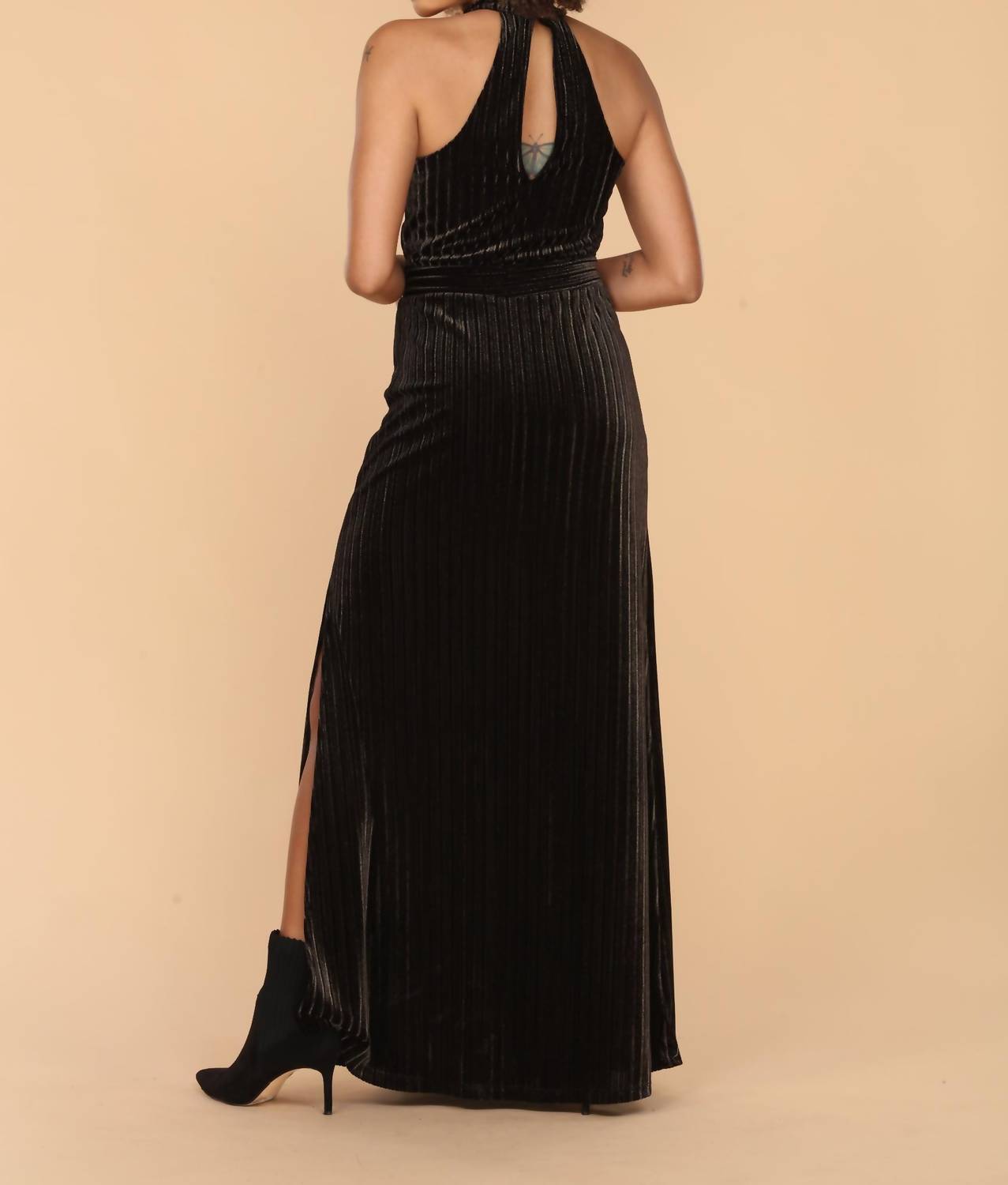 Когда вам нужно платье, которое скажет «ВАУ!», вот оно! Потрясающее и великолепное, если не сказать знойное, макси-платье. Ребристая черная бархатная бретелька через шею с вырезом-замочной скважиной сзади. Высокий разрез сбоку, чтобы показать достаточно ноги! Много эластичности для комфорта. Вы будете выглядеть потрясающе в этом платье, и вы не ошибетесь!