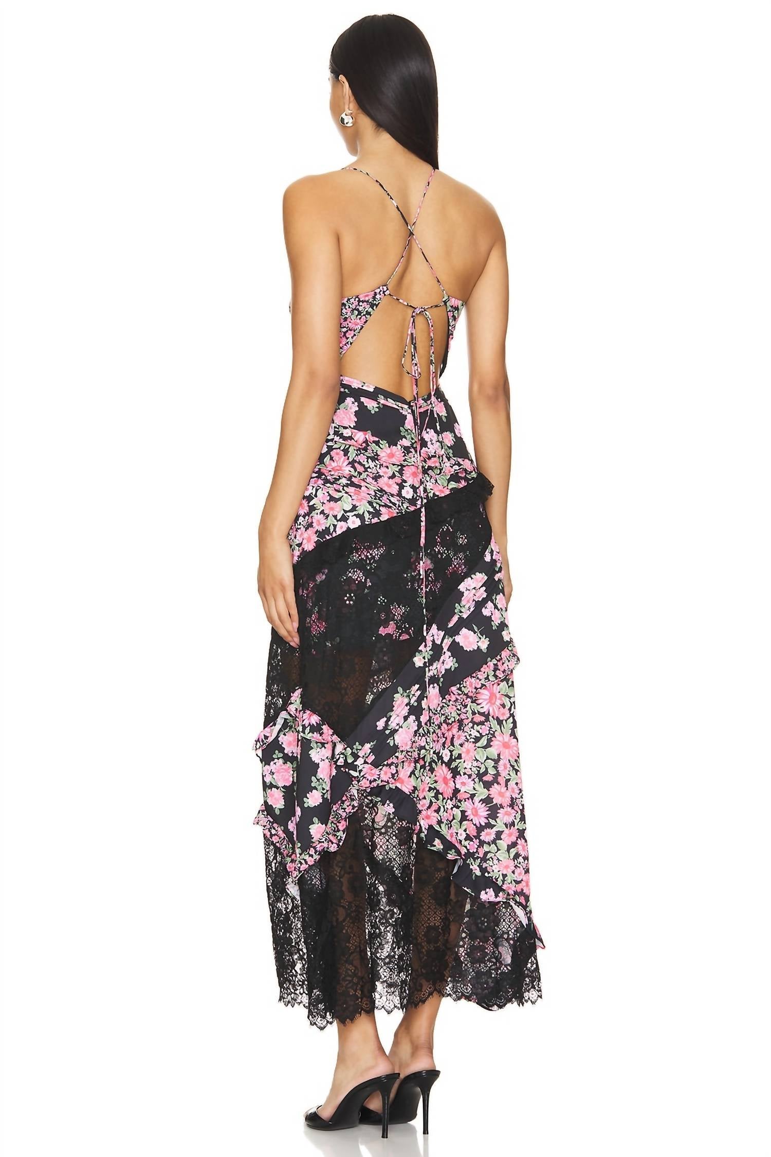 Частично на подкладке. Защипы. Узкие завязки на плечах. Завязки перекрещиваются на спине. Потайная застежка-молния по центру спины. Изготовлено из 100% переработанного полиэстера.