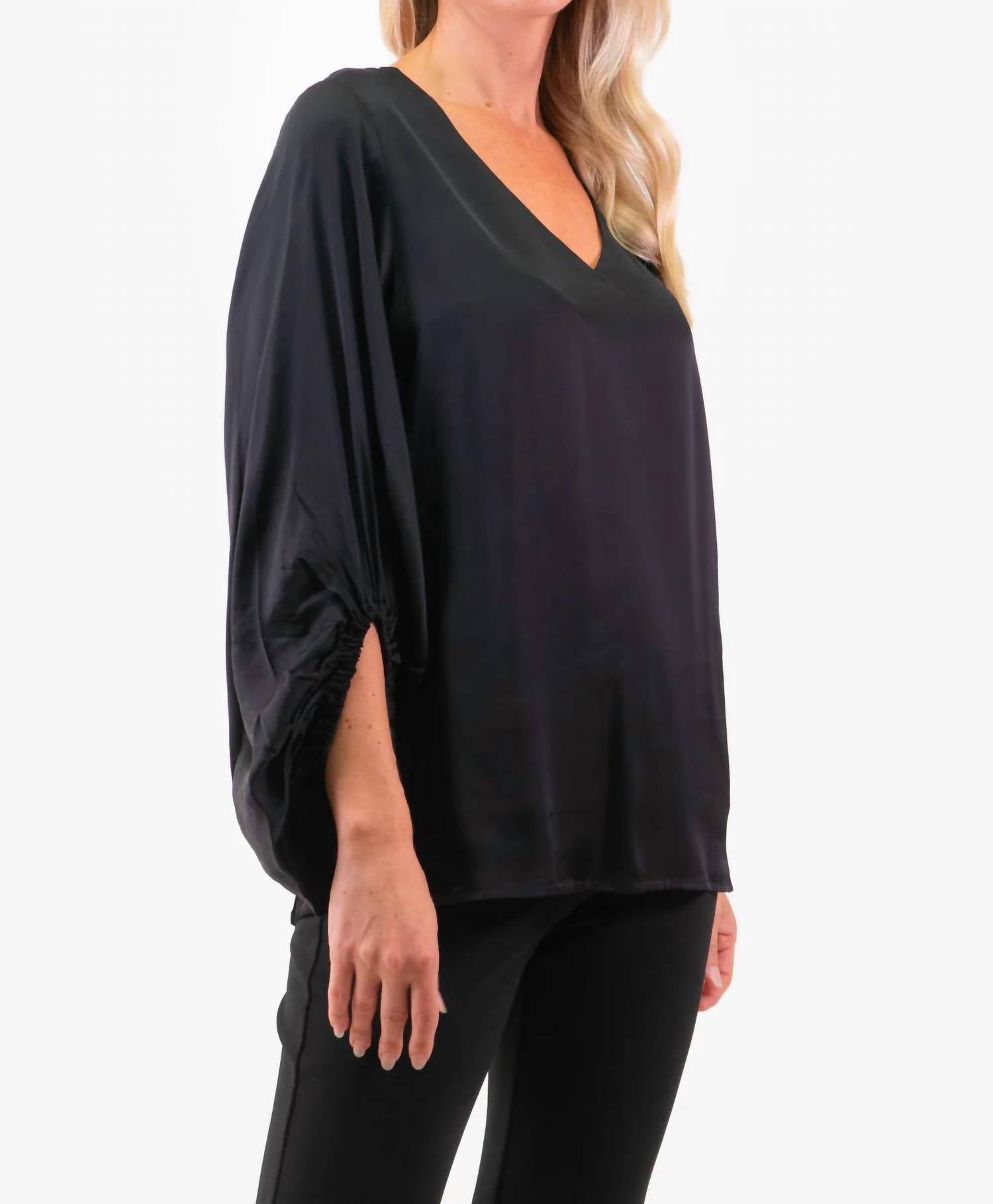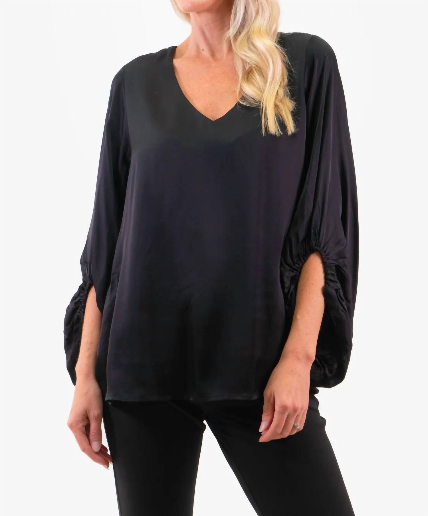 Вечная блузка, которая никогда не выйдет из моды. V-образный вырез. Рукава-колокол с эластичными манжетами. Удобная посадка.