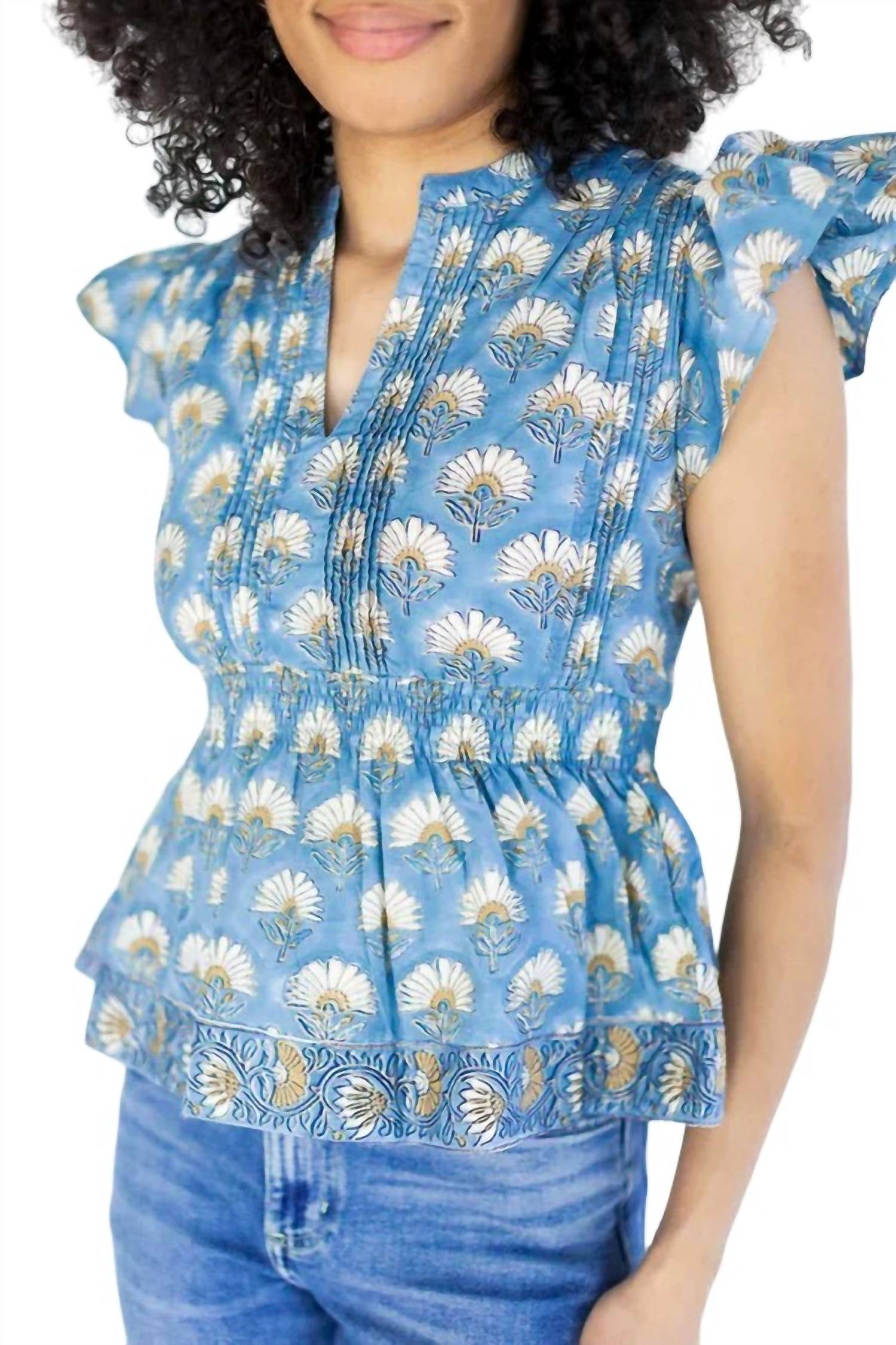 Воротник-стойка, V-образный вырез, рукава-крылышки, эластичная талия и подкладка. 100% хлопок. Только сухая чистка.