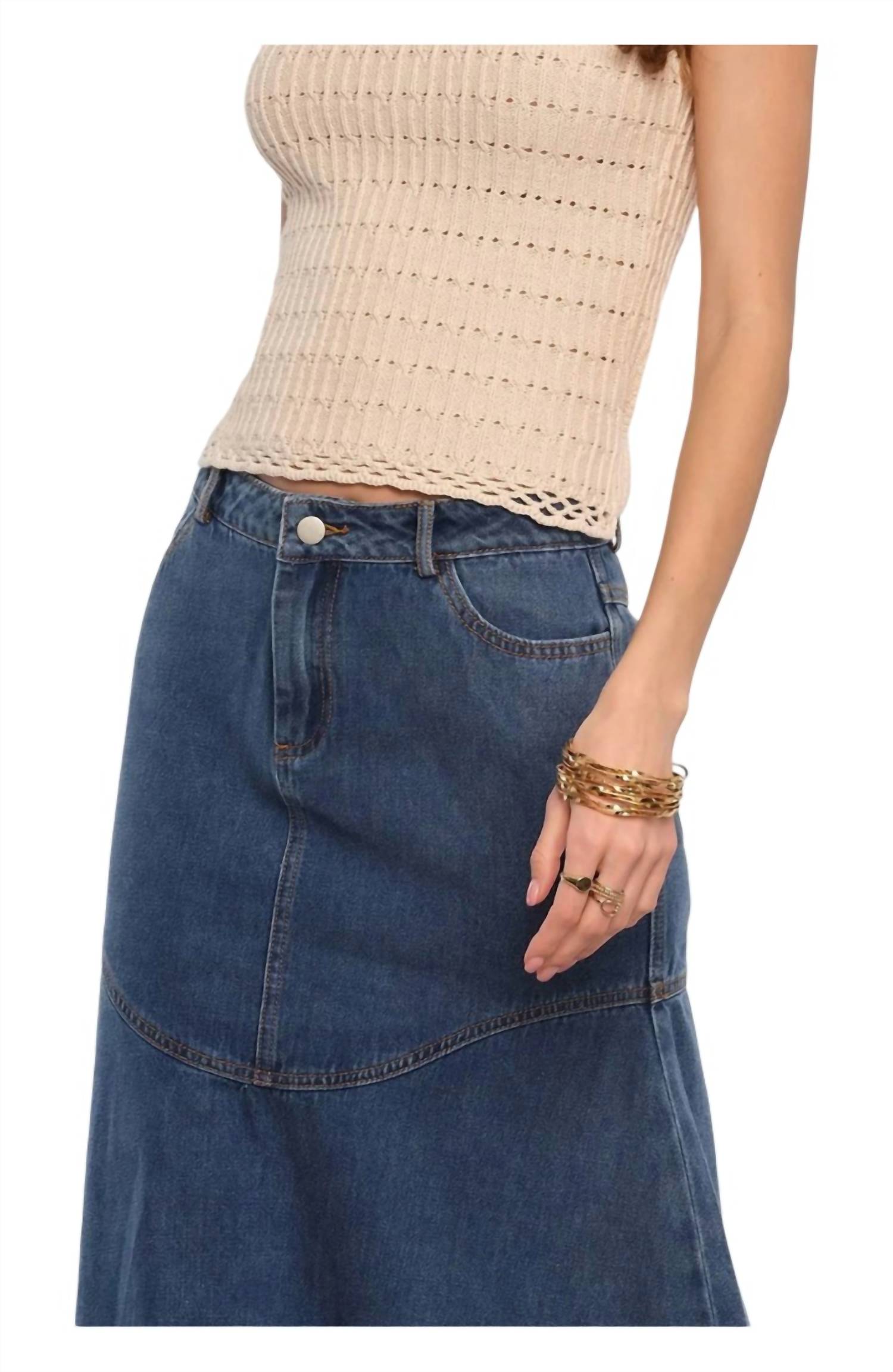 Естественная талия. Длина макси, свободный крой, разрез сзади. Джинсовая ткань. Свободный крой. Разрез сзади по центру. Накладные карманы. Длина - 38,5". 85% хлопок, 15% полиэстер.