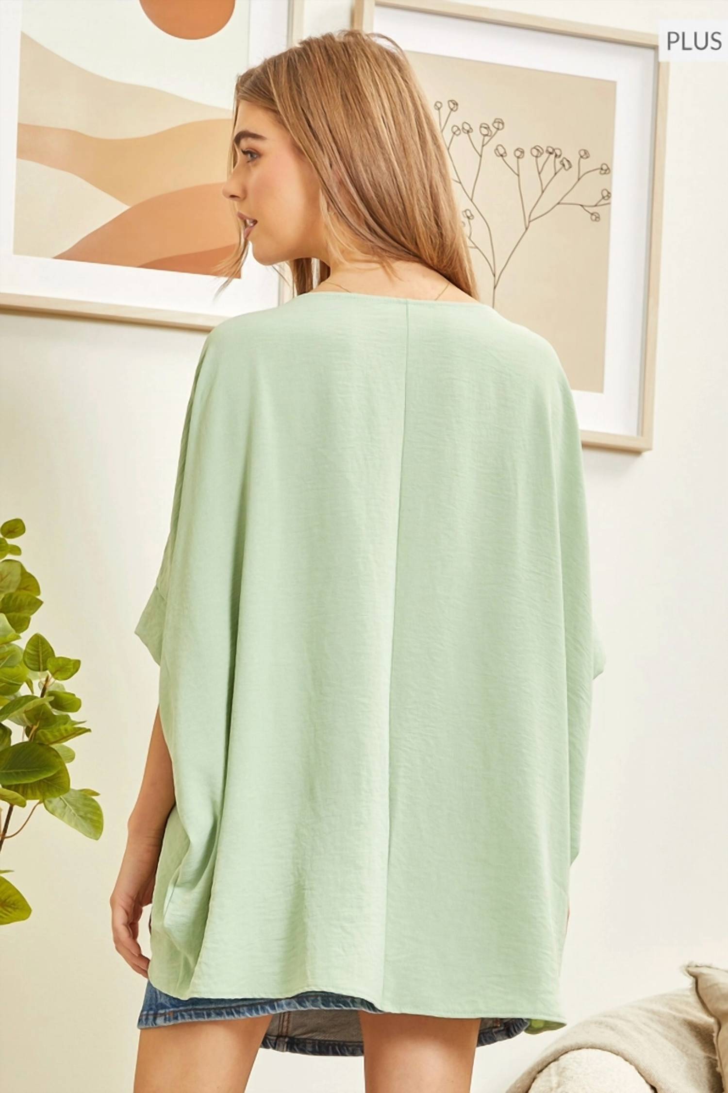 Изделие с круглым вырезом и рукавами «летучая мышь» изготовлено из непрозрачной ткани, состоящей из 100% полиэстера.