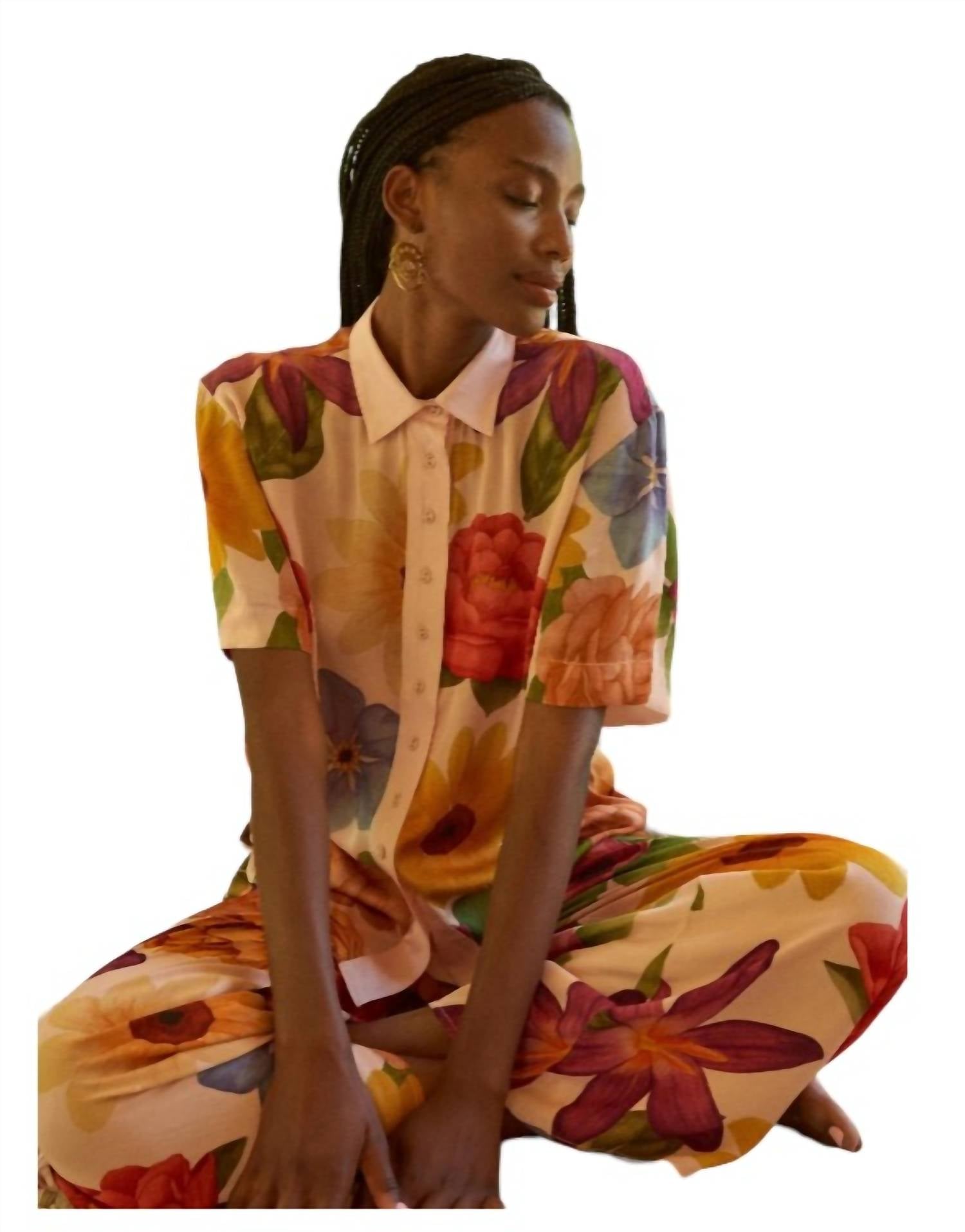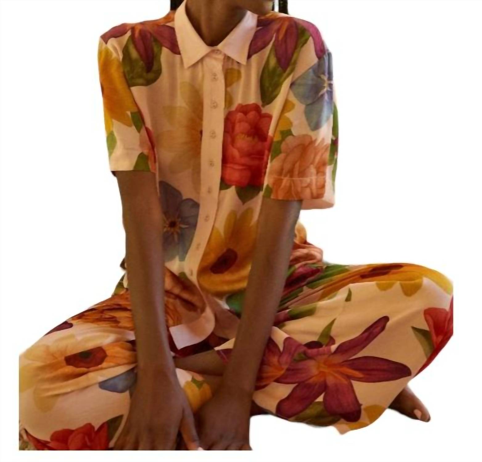 Цветочный кремовый принт. Отложной воротник. Полная застежка на пуговицы. Свободный крой. Оверсайз. 100% экологически чистая вискоза.