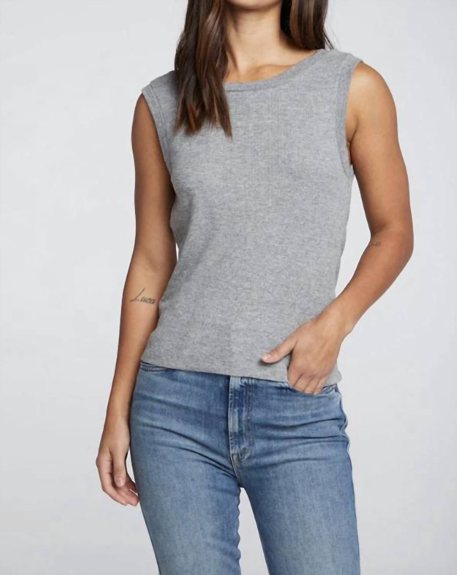 Майка Triblend Rib Shirred Back V Muscle в полосатом сером цвете Chaser