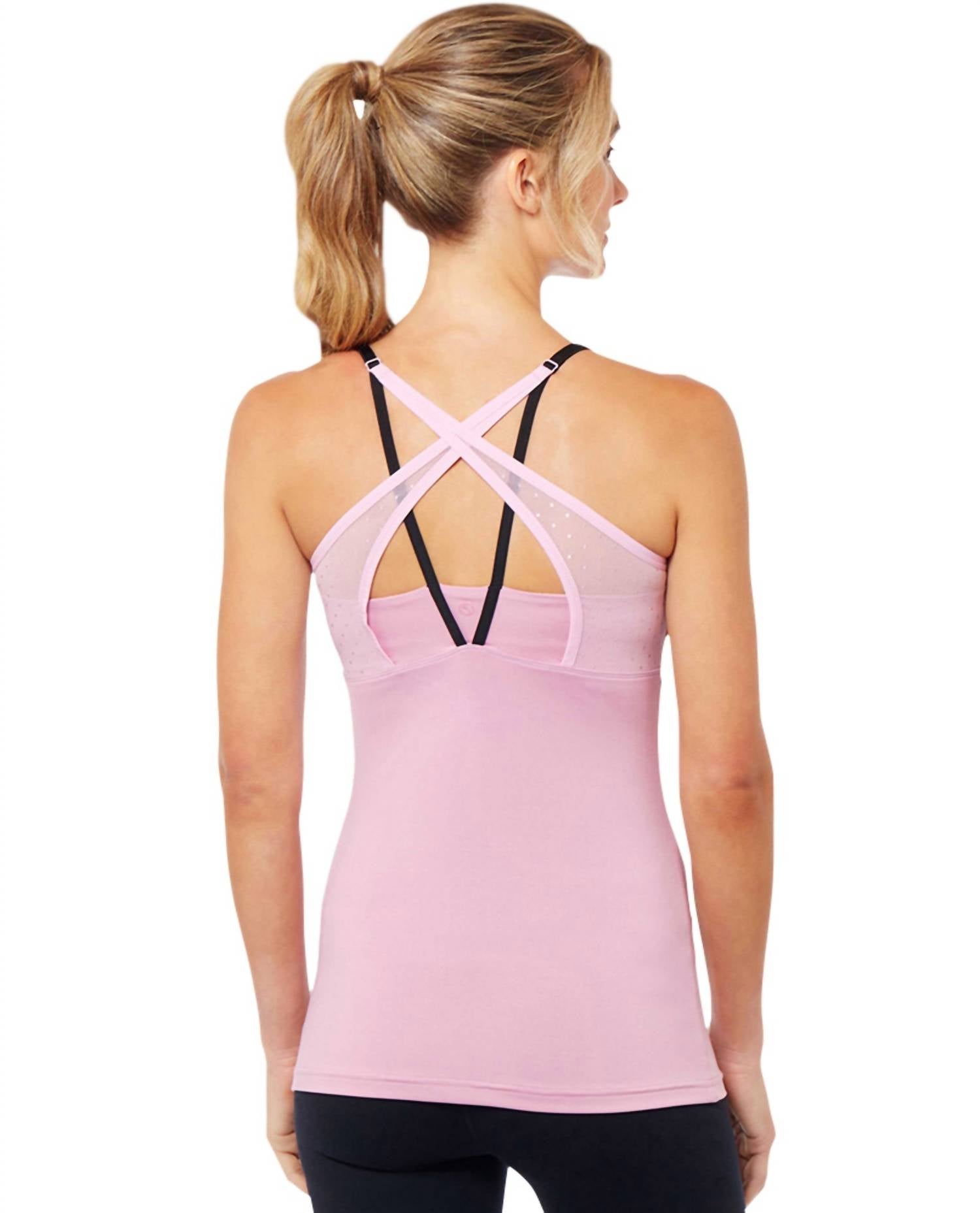 Эта майка Pirouhette имеет V-образный вырез, сетчатые бретели и перекрещивающуюся спину с дизайном «замочная скважина». Изготовлена из 84% полиэстера и 16% спандекса, включает в себя встроенный бюстгальтер с формованными чашками для средней поддержки.