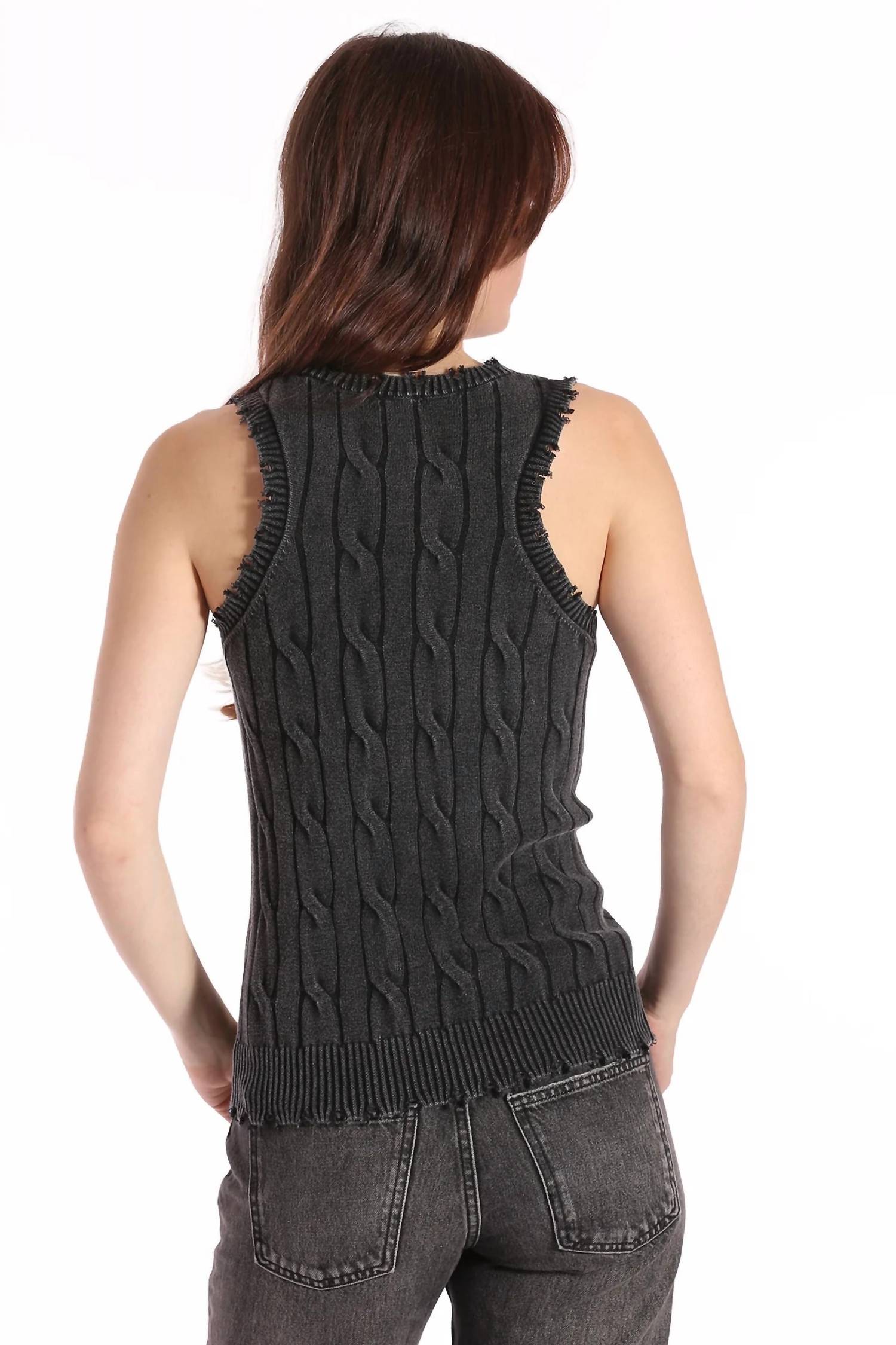 Эта майка Stone Wash Distressed Cable Tank Top изготовлена из 100% хлопка с текстурированным узором и свободным кроем. Благодаря вырезу-лодочке и фасону надевания, ее можно стирать вручную или подвергать химчистке.