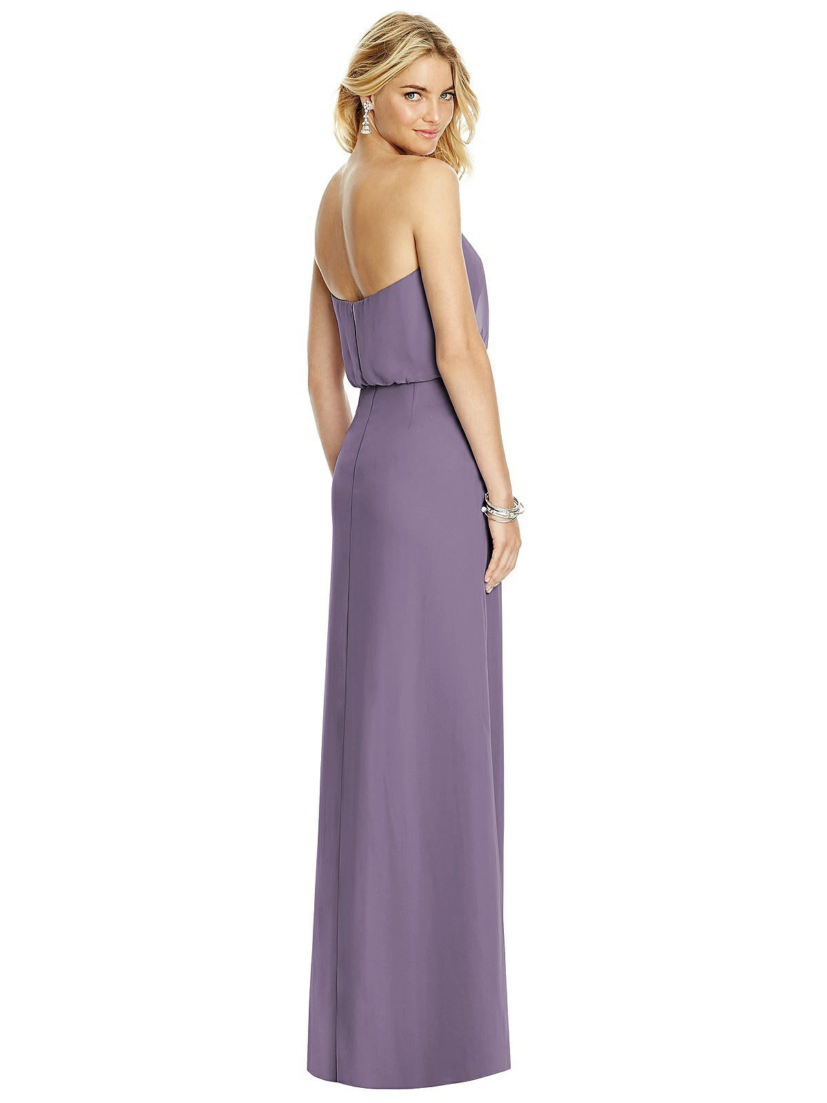 Вырез в форме сердца изящно переходит в лиф-блузон в этом длинном платье подружки невесты без бретелек. Мягкий роскошный шифон скользит по юбке А-силуэта, создавая прекрасный силуэт.