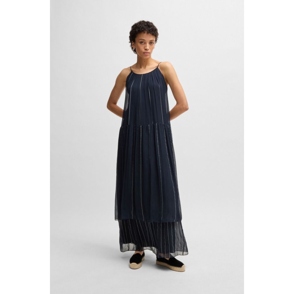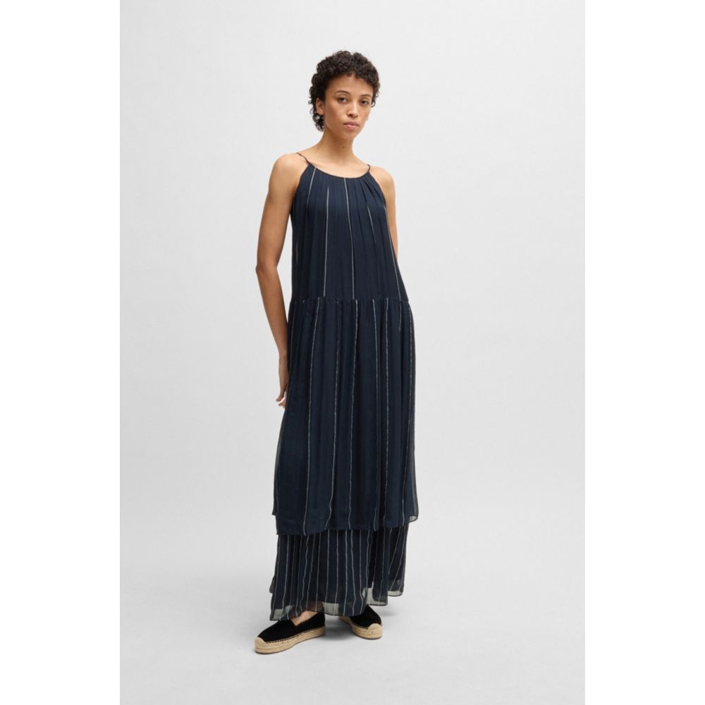 Многоярусное полосатое платье с шелком BOSS, цвет patterned