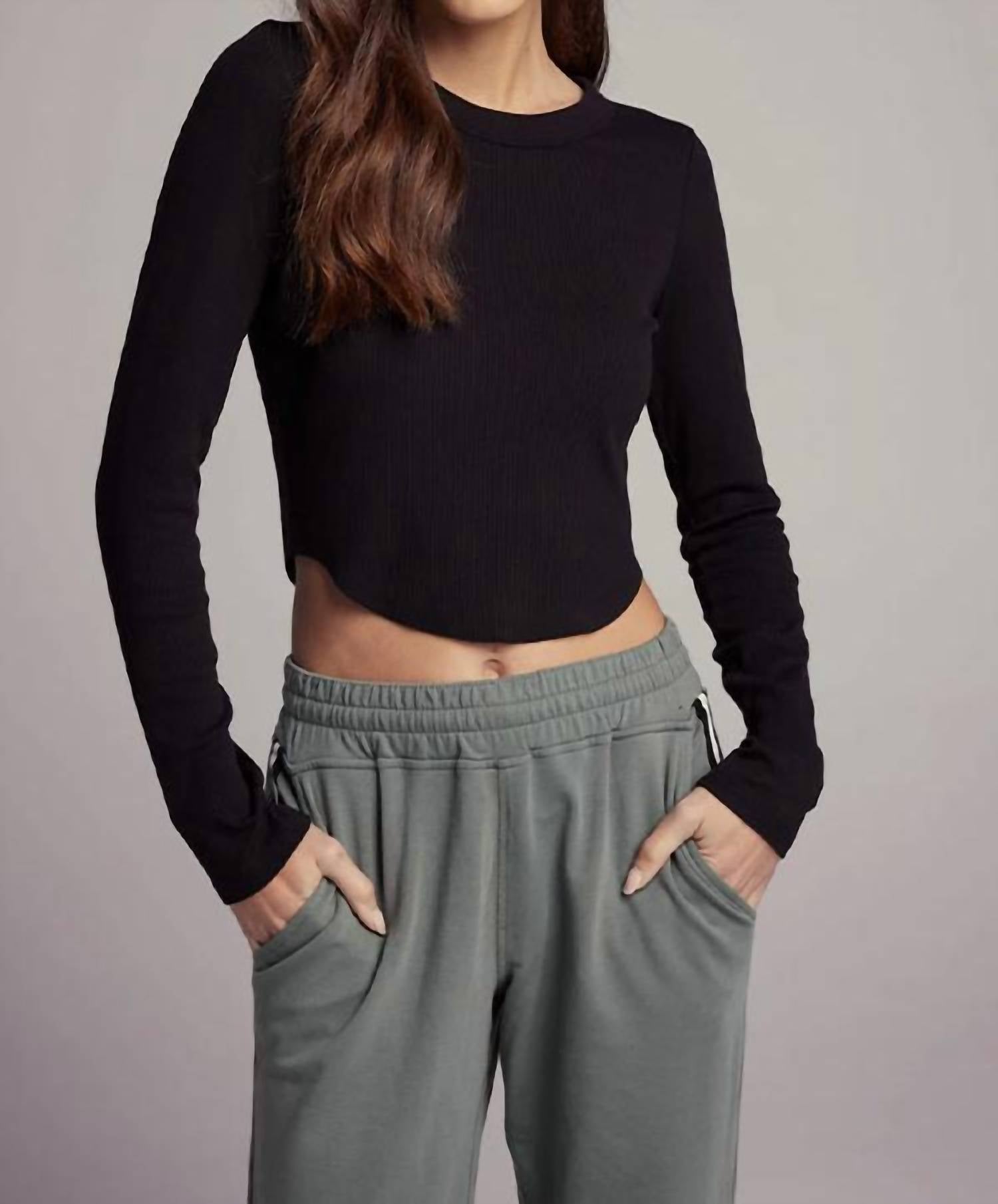 Длинные рукава. Изогнутый подол. Ребристая вязка. Толстая окантовка на горловине. Предварительно усажено и постирано. Приталенный. 58% хлопок, 22% модал, 20% спандекс.