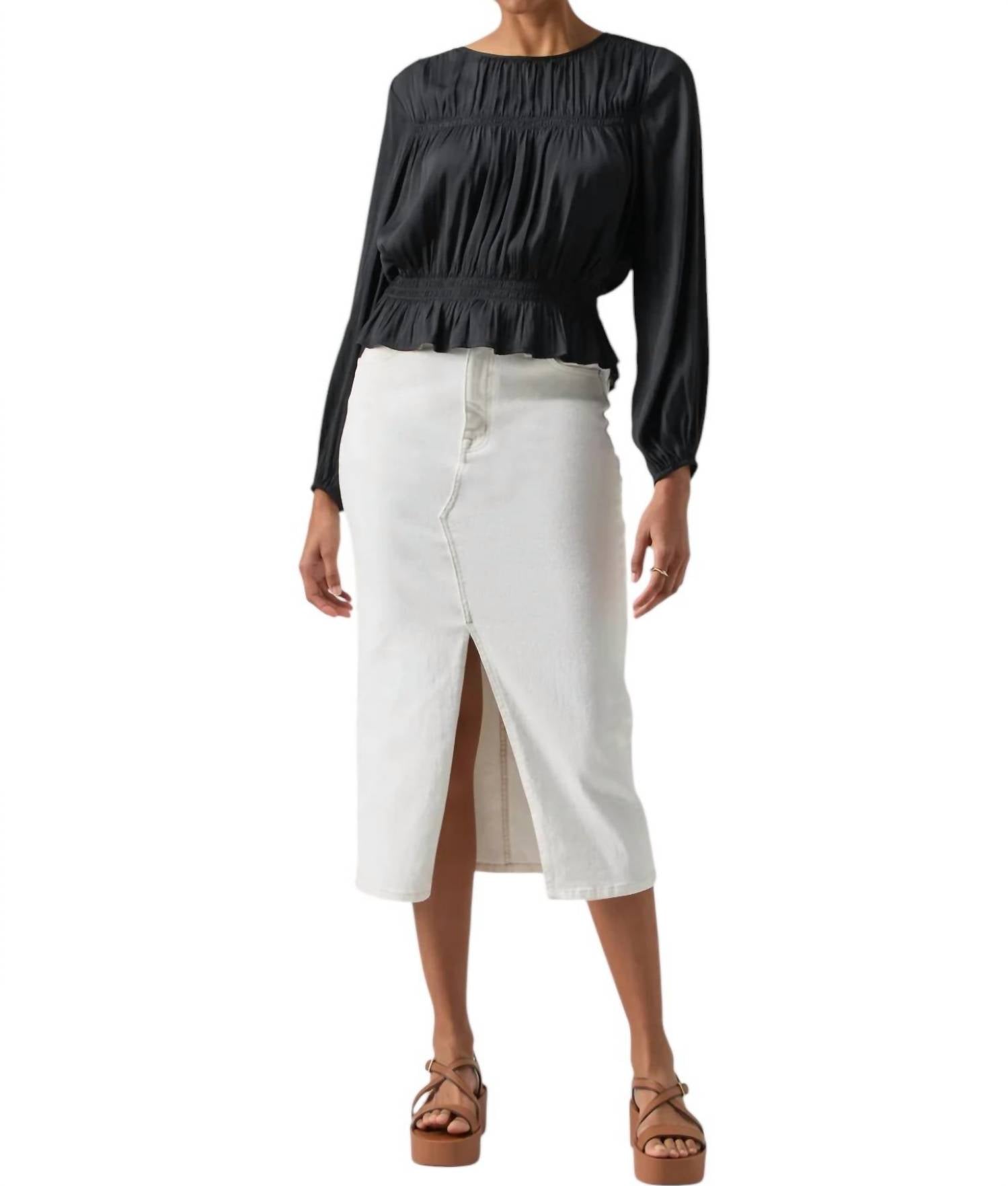Эта юбка имеет высокую талию, разрез спереди и дизайн с 5 карманами. Застежка на молнию спереди и пуговицы, свободный крой. Изготовлена из 98% хлопка и 2% спандекса. Длина - 32". Машинная стирка в холодной воде. Импортируется.