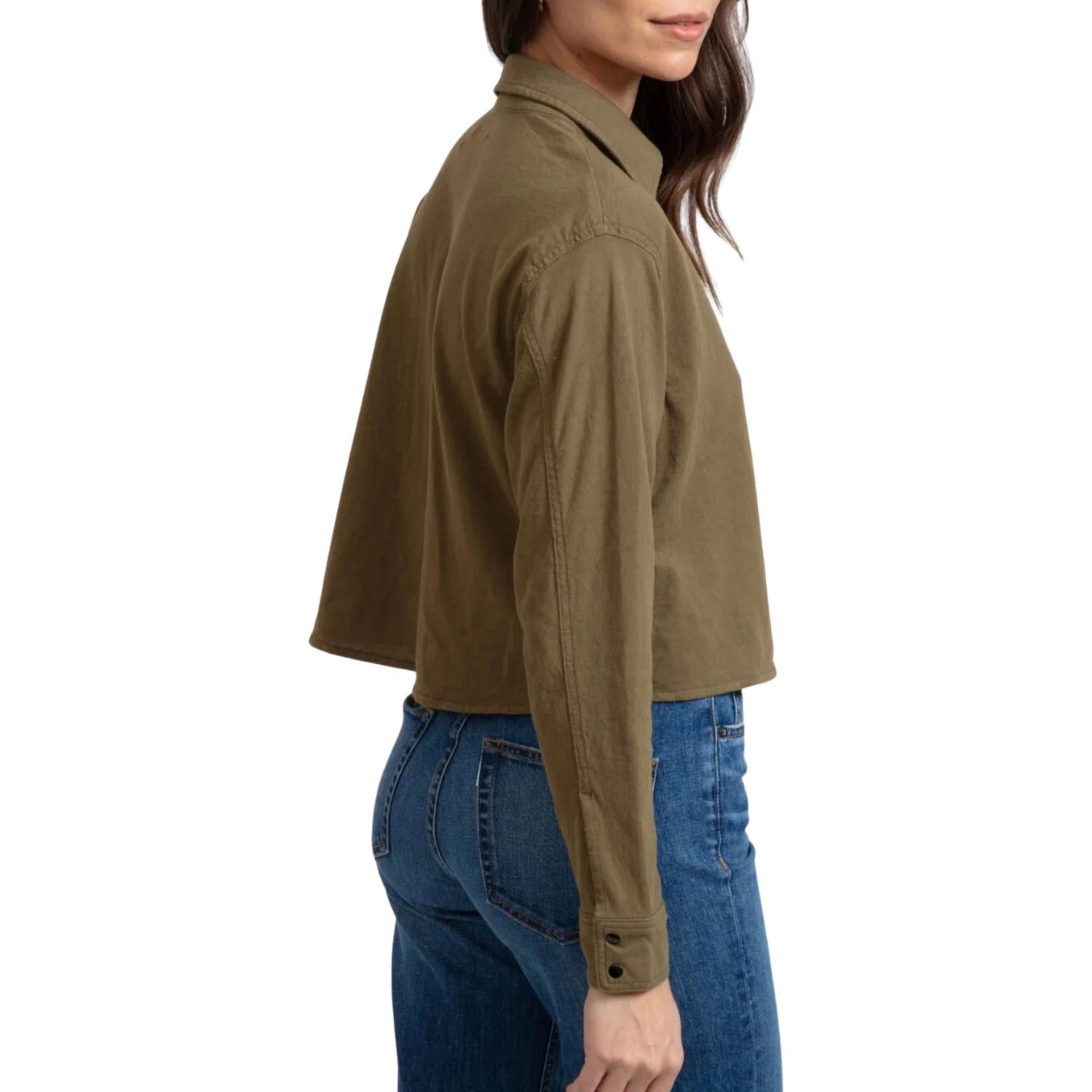 Идеально сшитая и мягкая на ощупь. Укороченная трикотажная рубашка Askk NY из хлопка в цвете Fatigue, укороченная на пуговицах, мягкий трикотажный трикотаж с длинными рукавами, передний карман, размер соответствует машинной стирке в холодной воде. Сделано в Лос-Анджелесе, штат Калифорния.