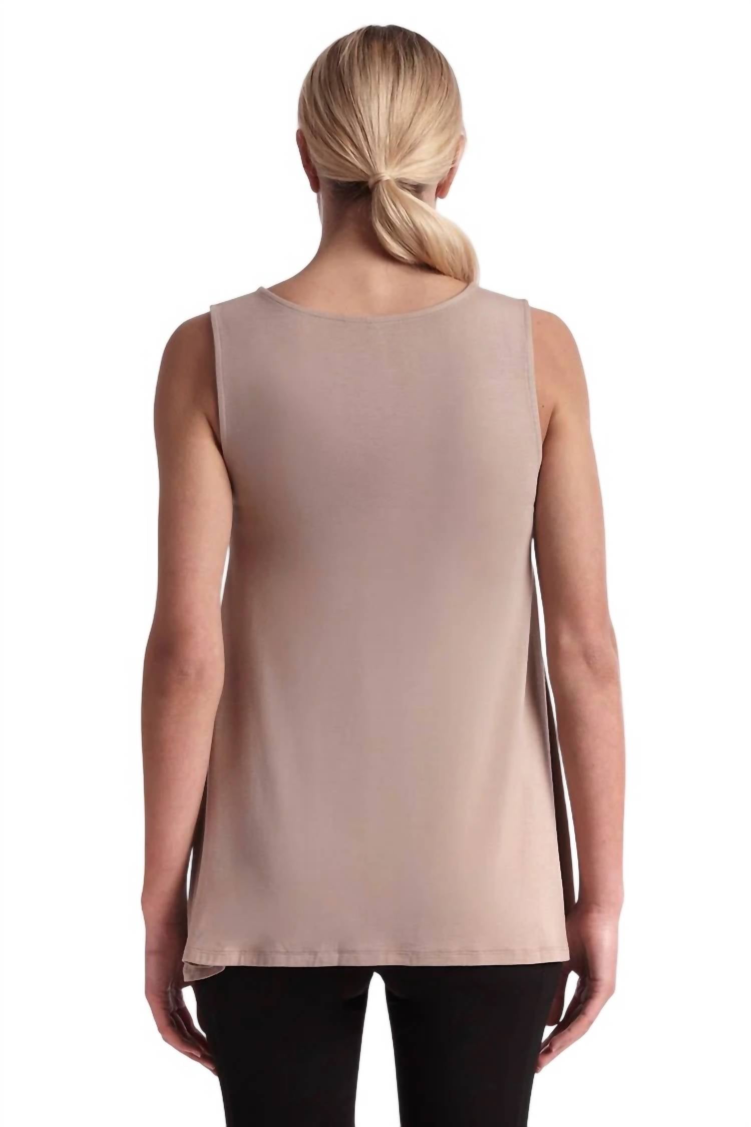 Трикотажная майка. Рост модели 5 футов 10 дюймов, на ней размер S. 93% бамбука, 7% спандекса. Машинная стирка в холодной воде, не отбеливать, сушить на горизонтальной поверхности, гладить при низкой температуре при необходимости или чистить в химчистке. Импортируется.