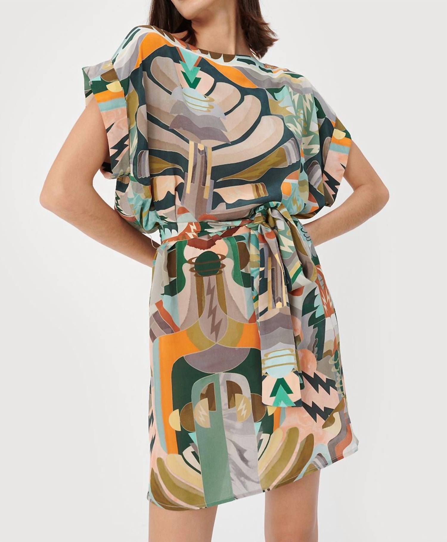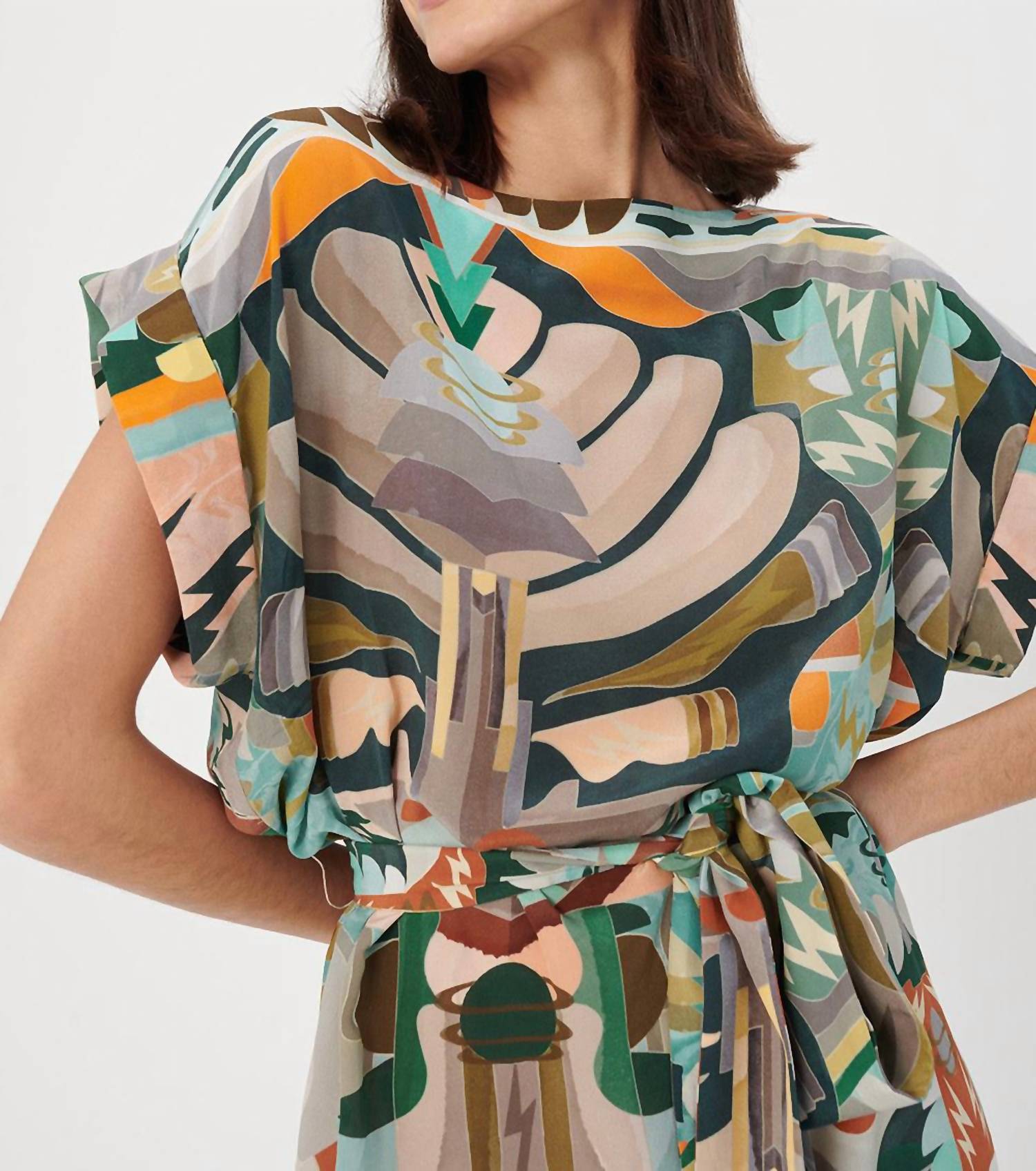 Туника Lydon Silk. Платье с поясом SS. Состав - 100% шелк. Цвет - Luka Green. Посадка - соответствует размеру.