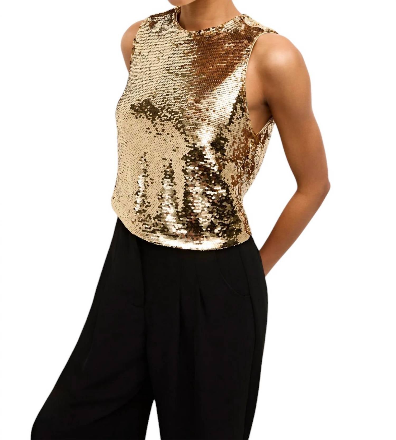 Эта укороченная оболочка из пайеток имеет мягкий золотистый оттенок с атласной окантовкой вокруг шеи. Изготовлена из неэластичной ткани с пайетками, имеет центральный вырез сзади с застежкой на пуговицу и петлю. Полностью на подкладке и изготовлена из 100% полиэстера. Только ручная стирка.