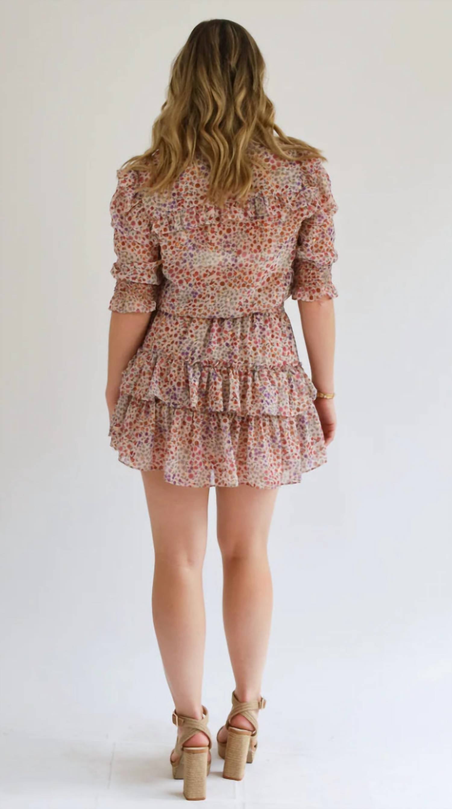 Благодаря присборенным манжетам на рукавах, карманам с оборками на груди, присборенному поясу и многоярусной юбке вы будете выглядеть и чувствовать себя элегантно и красиво.