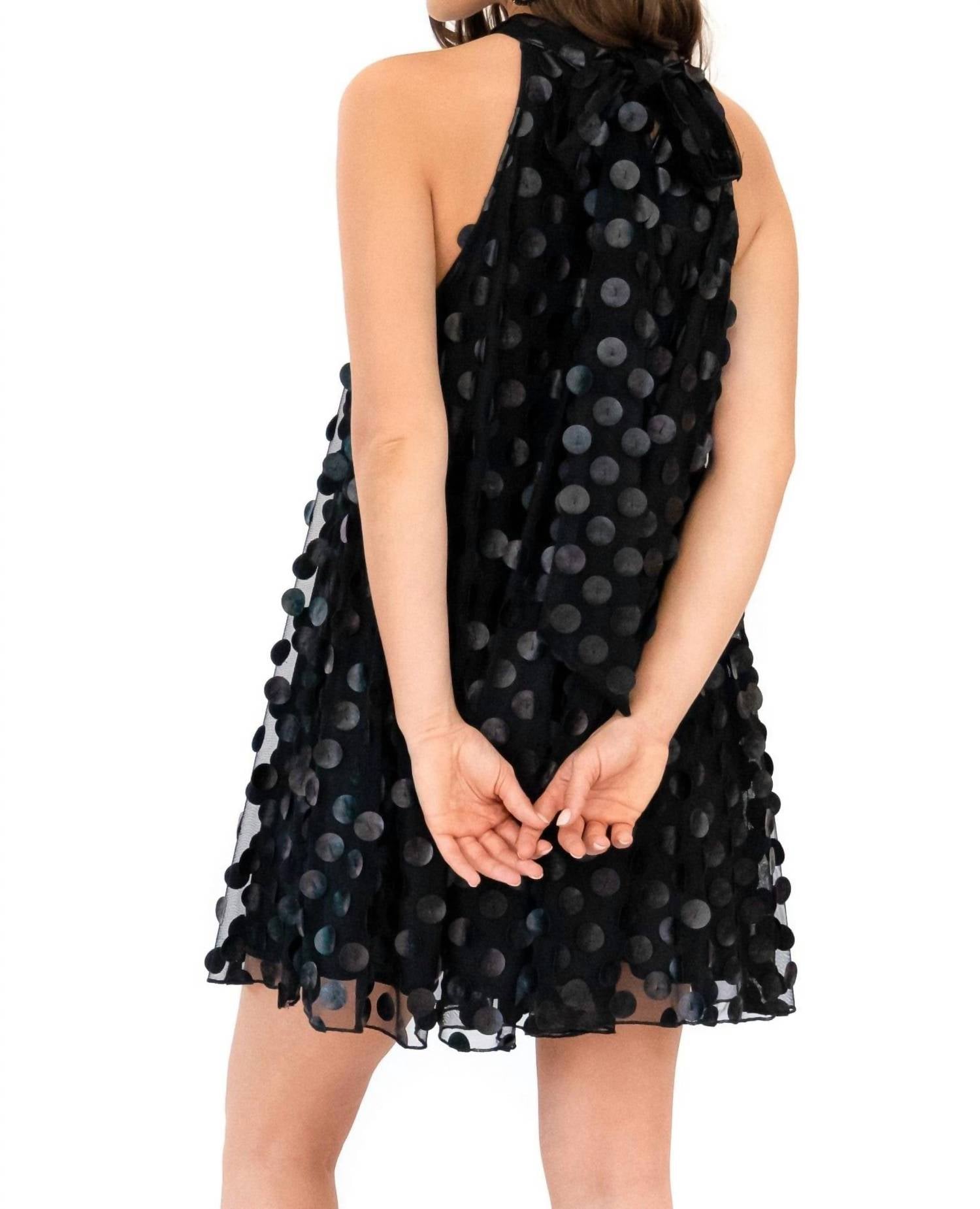 Воротник-халтер. Расклешенный силуэт. Завязка на спине. Модель в стиле пуловера. Ручная стирка. Сделано в Лос-Анджелесе, США. Размеры — стандартная длина от плеча 34,5 дюйма; подол выше колена.