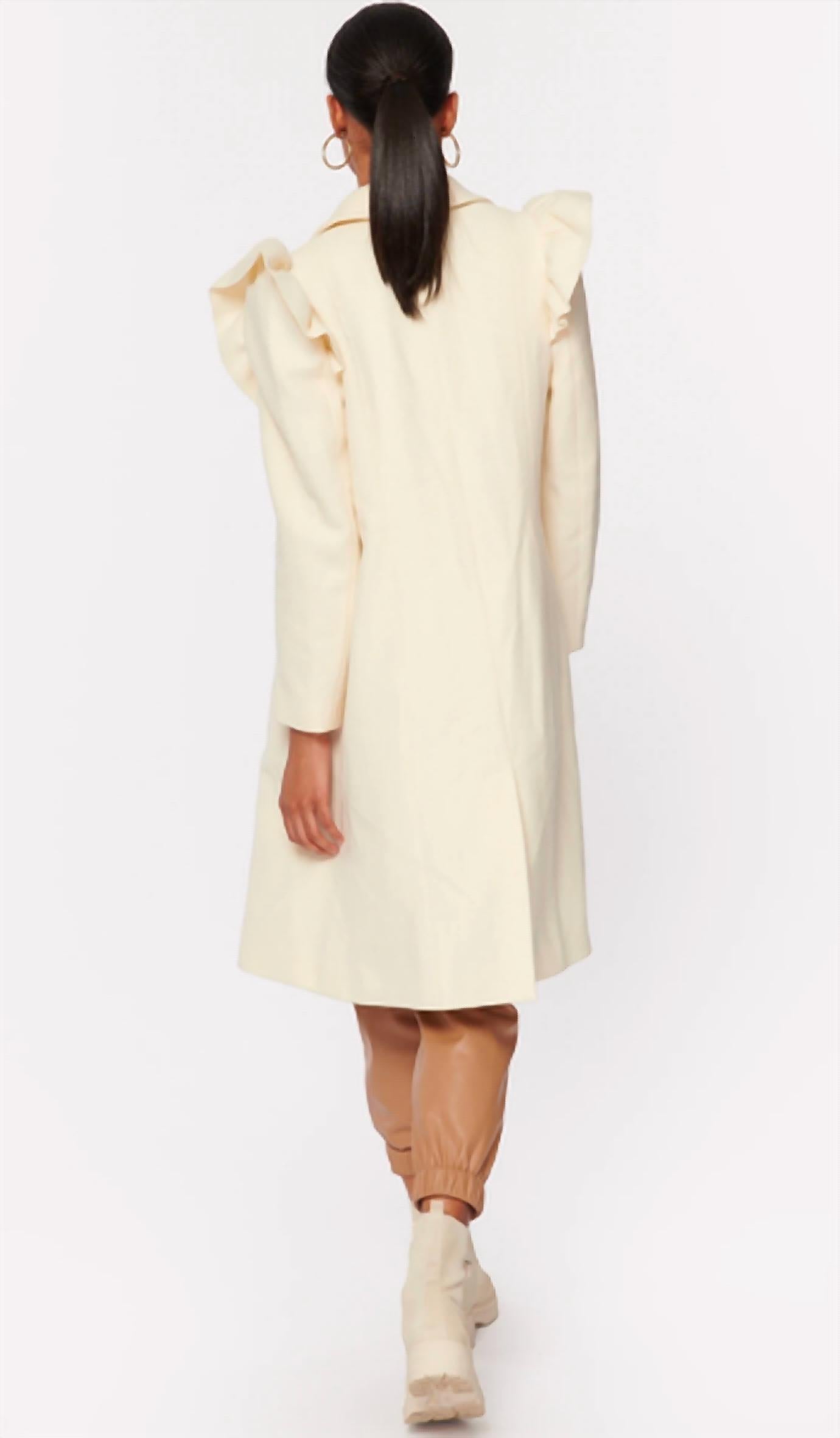 Красиво сшитое, вы будете носить это пальто-бушлат сезон за сезоном. Платье-пальто длины миди. Застегивается на пуговицы. Мягкая шерсть. Накладные плечи. Оборки вдоль передней кокетки и проймы. Ребристая отделка на манжетах. Отделка роговыми пуговицами. Боковые прорезные карманы. Шлица сзади. 100% шерсть. Только сухая чистка и отпаривание. Импортное. Соответствует размеру. На модели размер S. Параметры модели: рост - 5 футов 9 дюймов, бюст - 33 дюйма, талия - 24,5 дюйма, бедра - 37 дюймов.