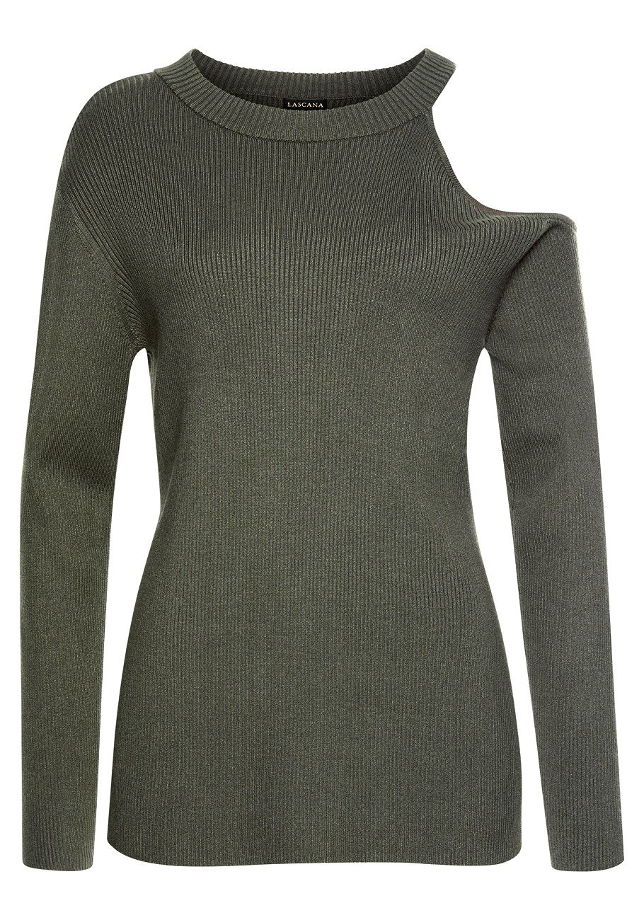 LASCANA Женский свитер с боковыми разрезами, оливковый