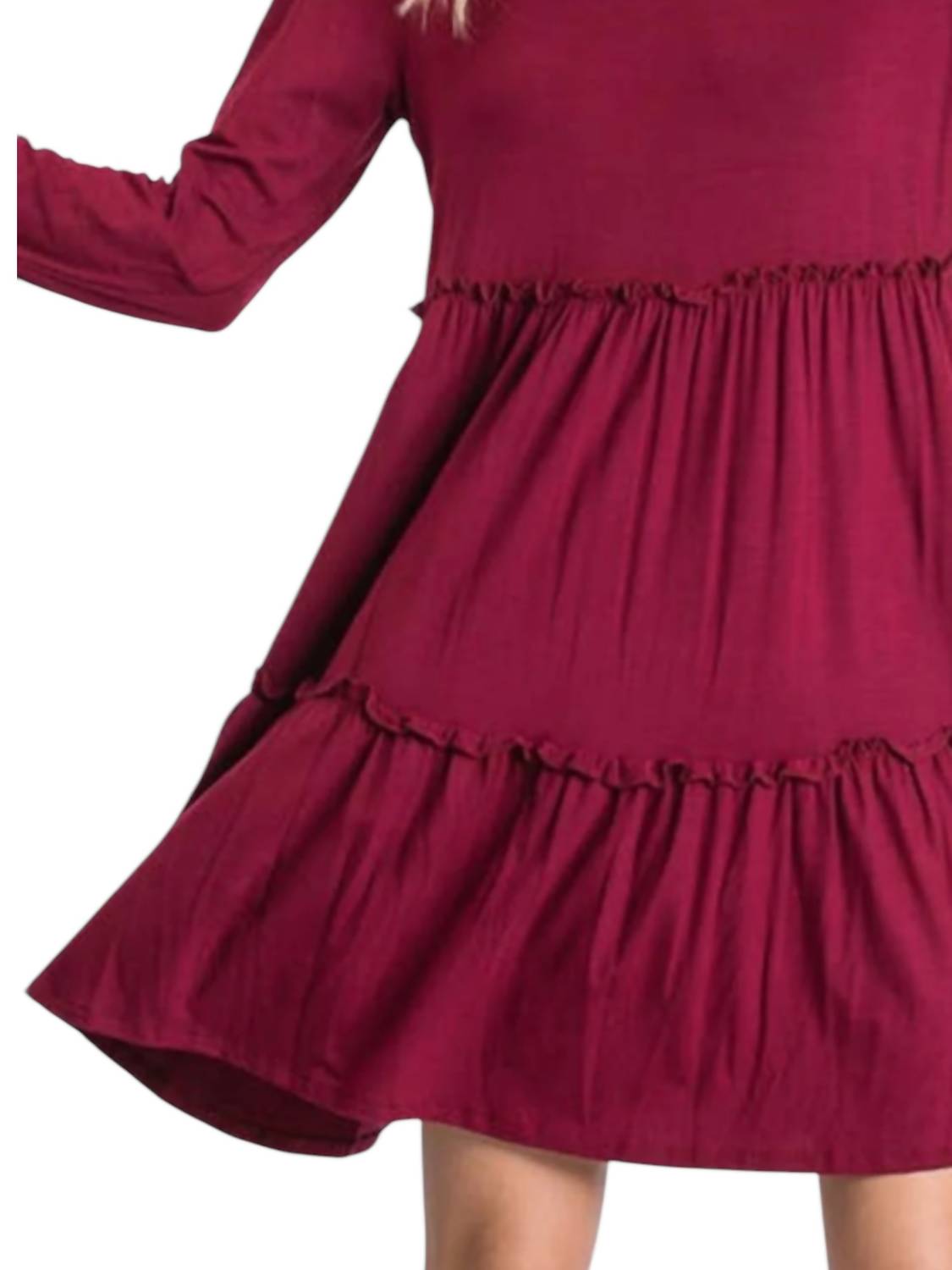 Длинный рукав. Платье с оборками. Вырез горловины "лодочка". Модель надевается через голову. 95% хлопок, 5% спандекс. Машинная стирка в холодной воде.