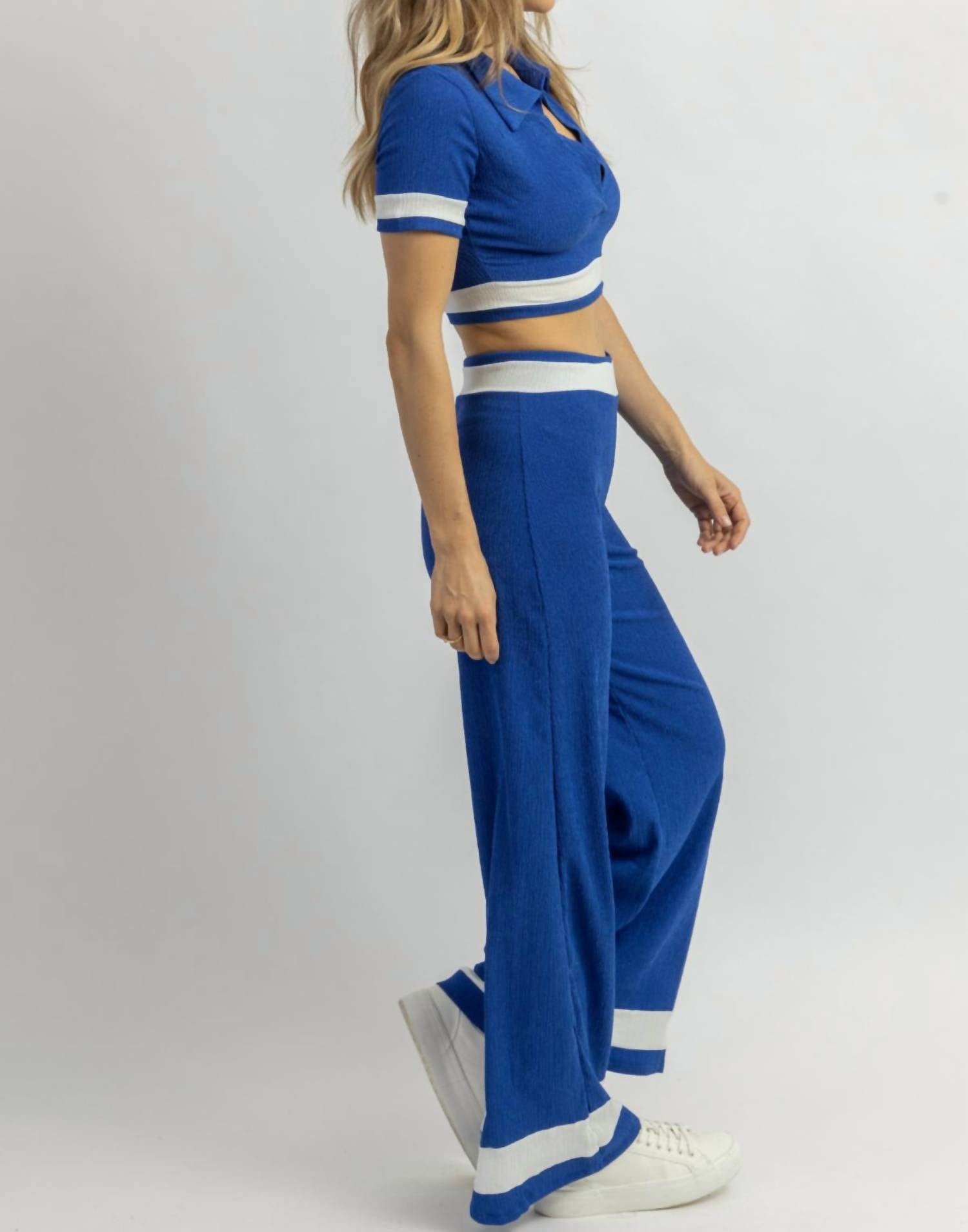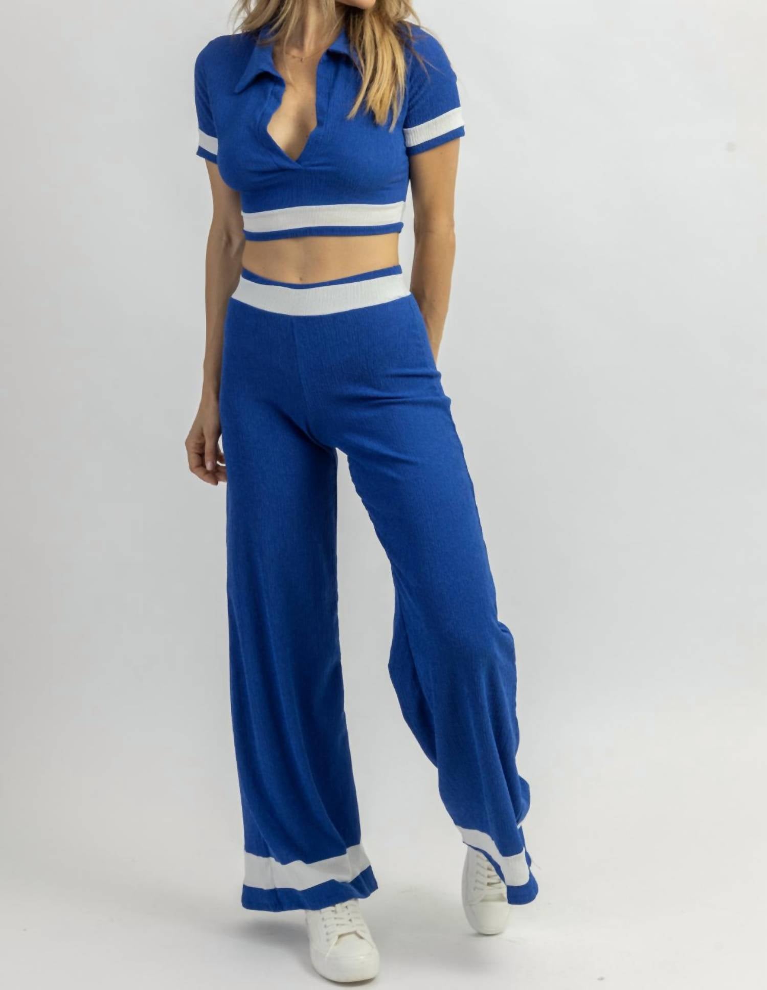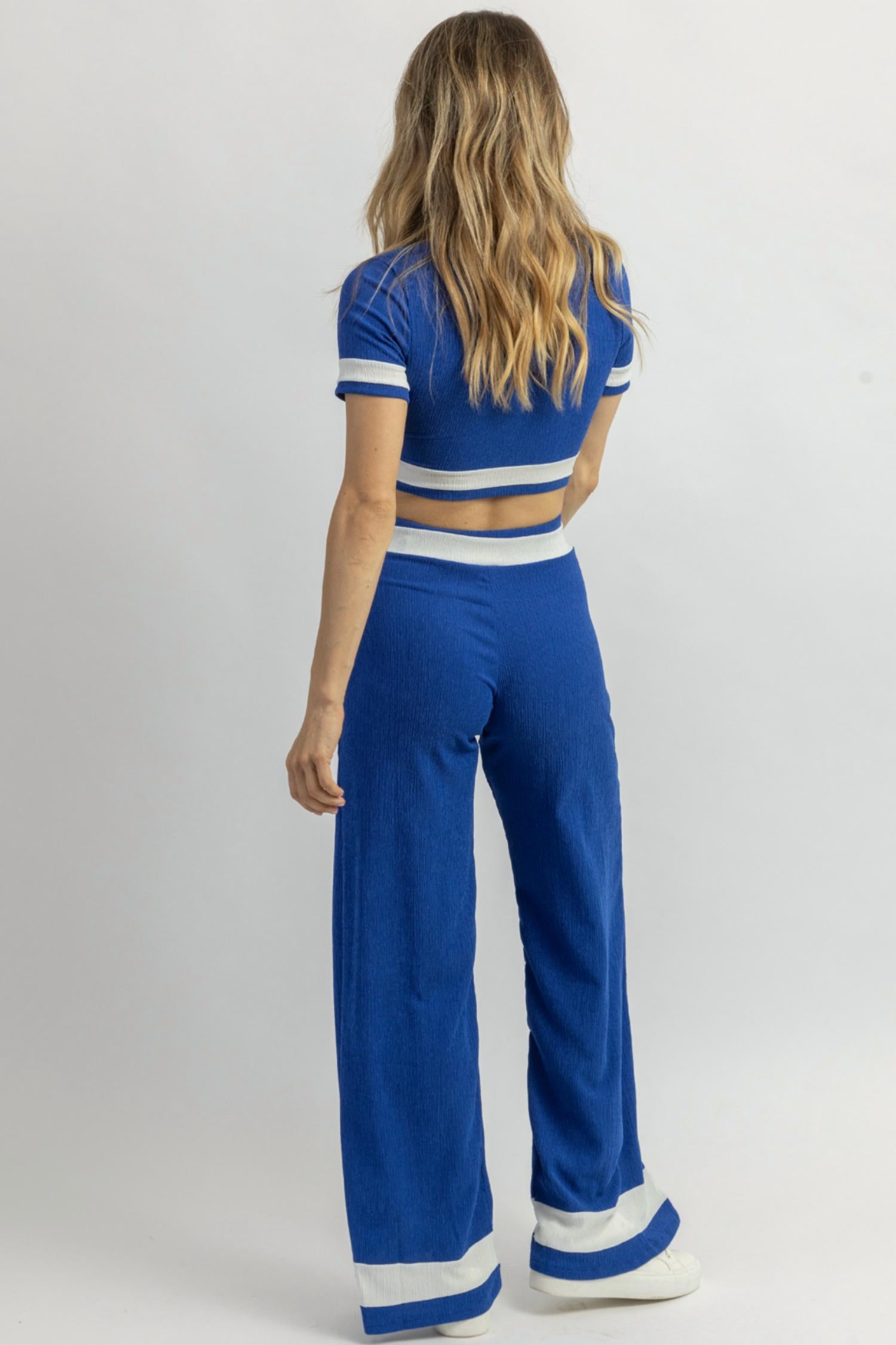 Продается вместе, укороченная, короткие рукава, воротник, контрастные полосы, облегающие брюки с клешем, высокая посадка. 94% полиэстер, 6% спандекс. На модели размер small. Рост 5'8, размер платья 2.