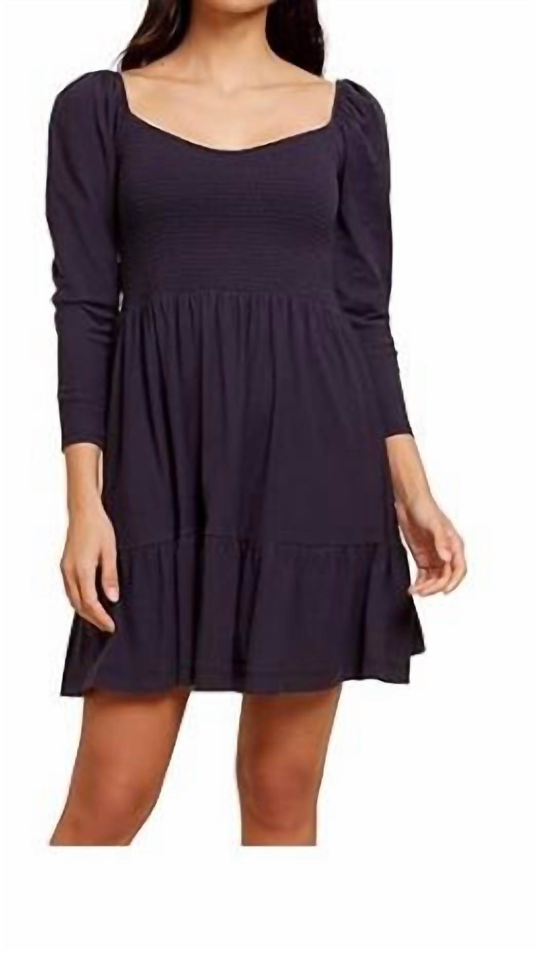 Платье-бэбидолл. Вырез сердечком. Верх со сборками. Струящаяся мини-юбка. Плотно прилегает к телу, создавая более очерченный силуэт. Мягкое и легкое. Ткань 100% пима-хлопок.