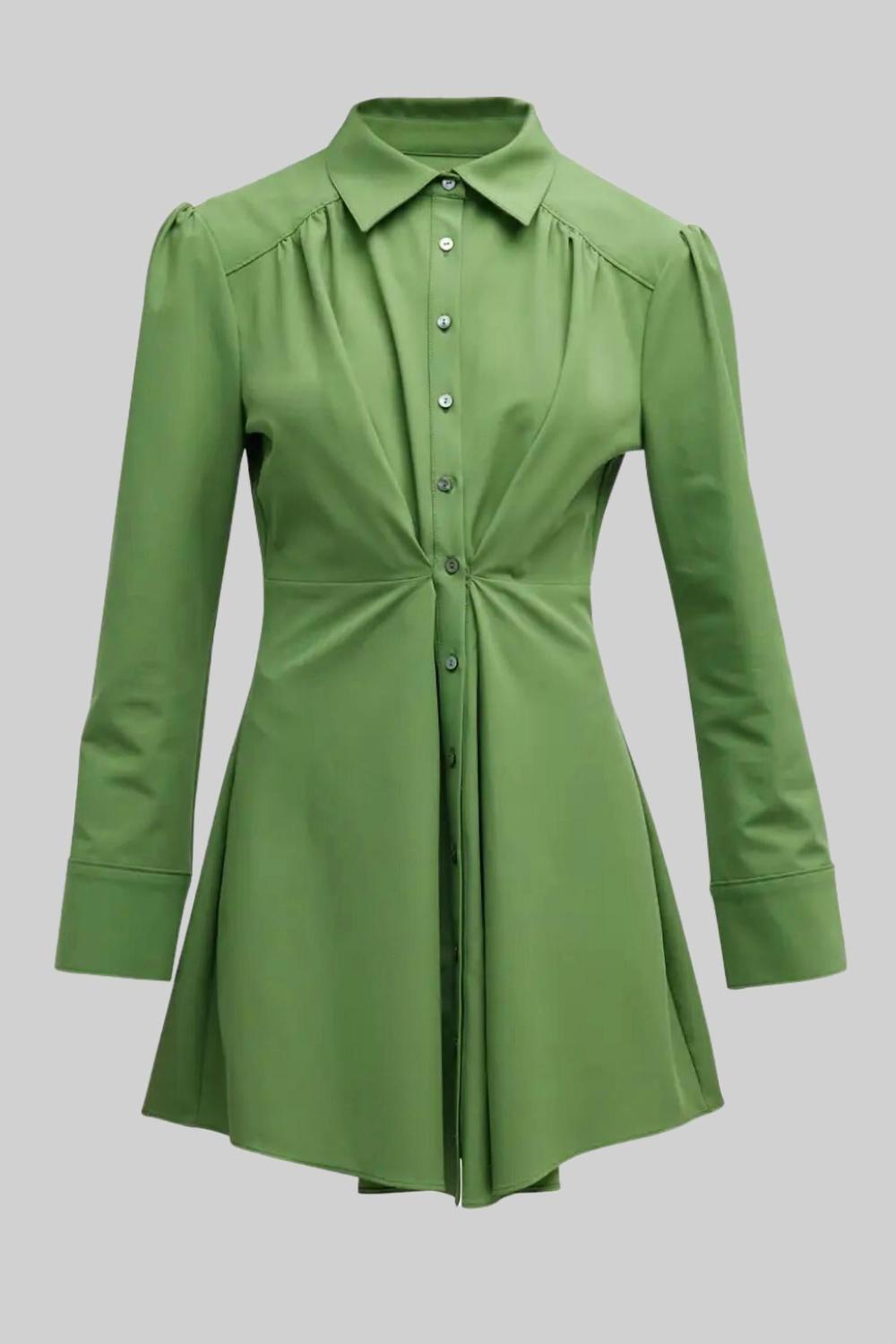 Платье-мини-платье Sadie Stretch с пуговицами спереди и воротником-стойкой. Ткань - Sadie Stretch. Длина мини. Спереди складка. Длинный рукав. Химчистка. Импортируется.