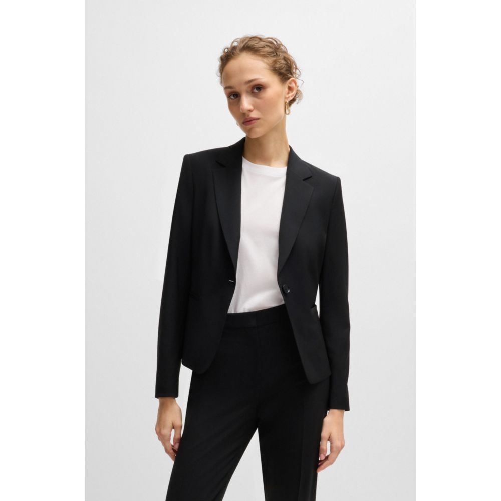 Современный жакет прямого кроя из натуральной шерсти с однобортным передом от BOSS Womenswear.