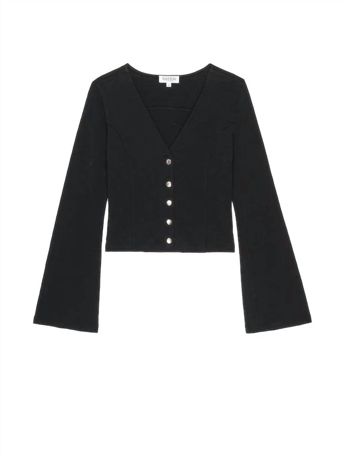 Этот тонкий топ с расклешенными рукавами имеет глубокий V-образный вырез с фирменными золотыми кнопками и обеспечивает идеальную легкую посадку. Изготовлен из 100% перуанского хлопка, его можно стирать в стиральной машине, он произведен в Перу.