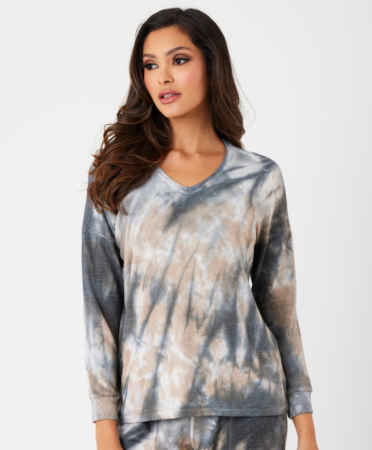 Этот топ с длинным рукавом и V-образным вырезом Marble Wash обеспечивает мягкую посадку с узором тай-дай, V-образным вырезом и надеваемым дизайном из смеси вискозы, полиэстера и эластана. Длина до бедра, требует деликатной ручной стирки или химчистки.
