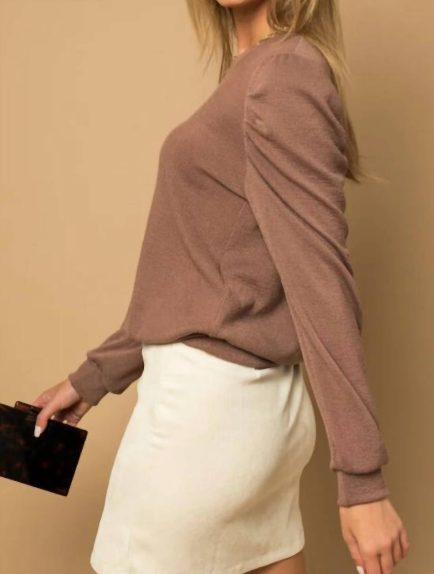 Идеальная футболка с длинным рукавом, которая подойдет практически ко всему.Супертонкий верх, напоминающий толстовку, с милыми рукавами-фонариками украсит любые джинсы. Добавьте наши пинетки и шапку для вашего зимнего образа.Идет размер в размер, свободный и тянется. На фотографиях выглядит коричневым, но верх красивого нейтрального лилового цвета.