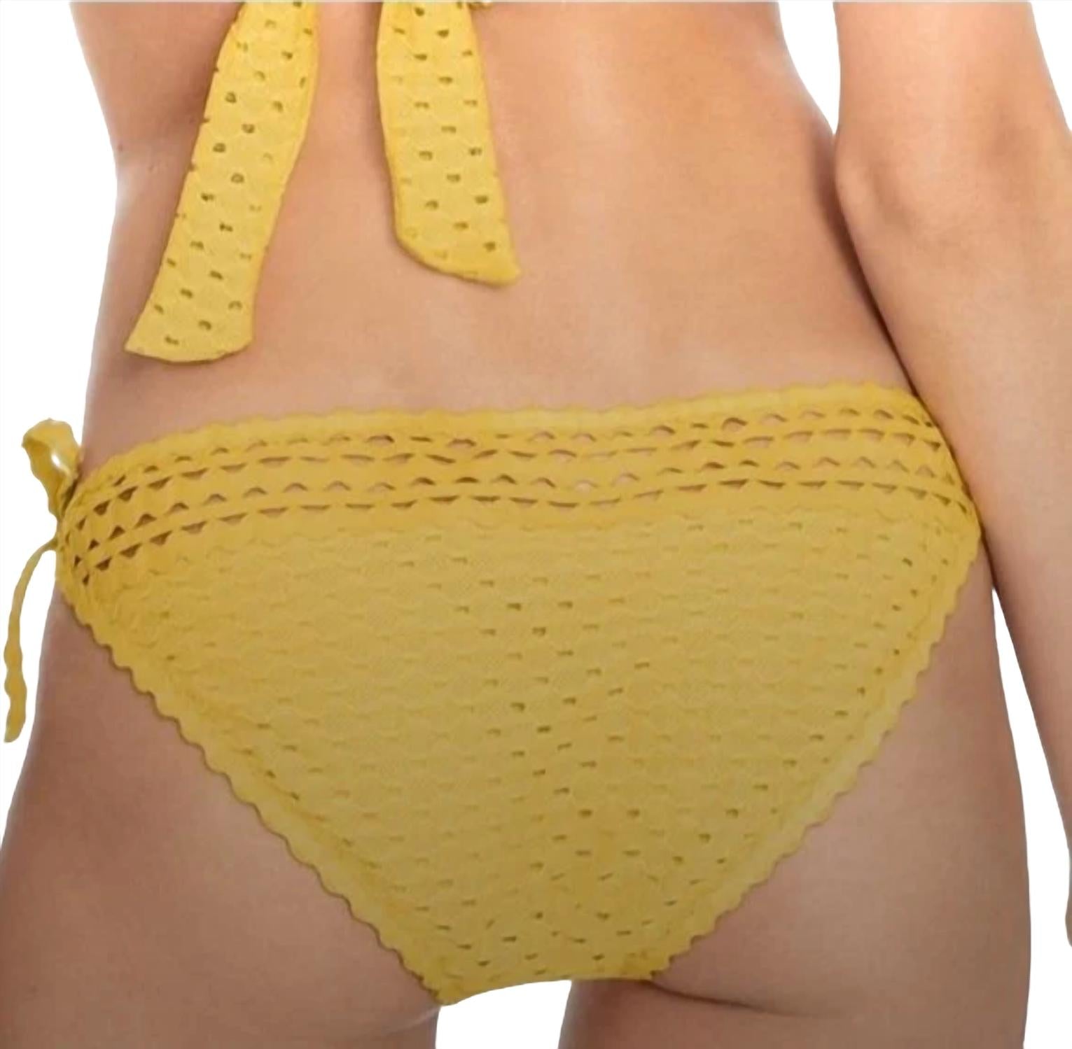Люверсы в виде ромашек, фестончатая окантовка Ric-Rac и кокетливые завязки-замочки. Завязывающиеся по бокам. Умеренная степень покрытия. На подкладке. Ткань - 83% микрополи, 17% спандекс. Ручная стирка.