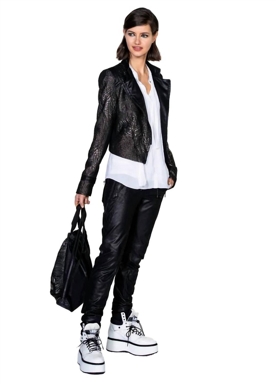 Идеальные брюки для пробежек по городу и при этом выглядеть круто. Джоггеры из искусственной кожи имеют эластичный пояс с регулируемым шнурком, два передних кармана на молнии, два задних кармана, кокетку сзади и отвороты. Материал - 90% полиэстер, 10% эластан.