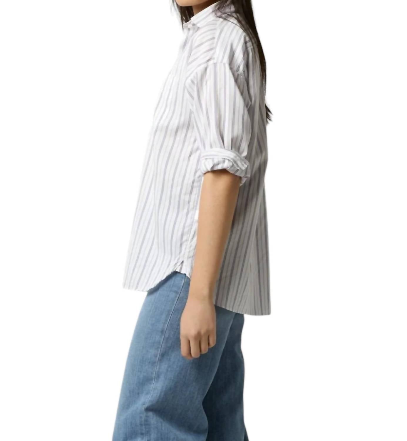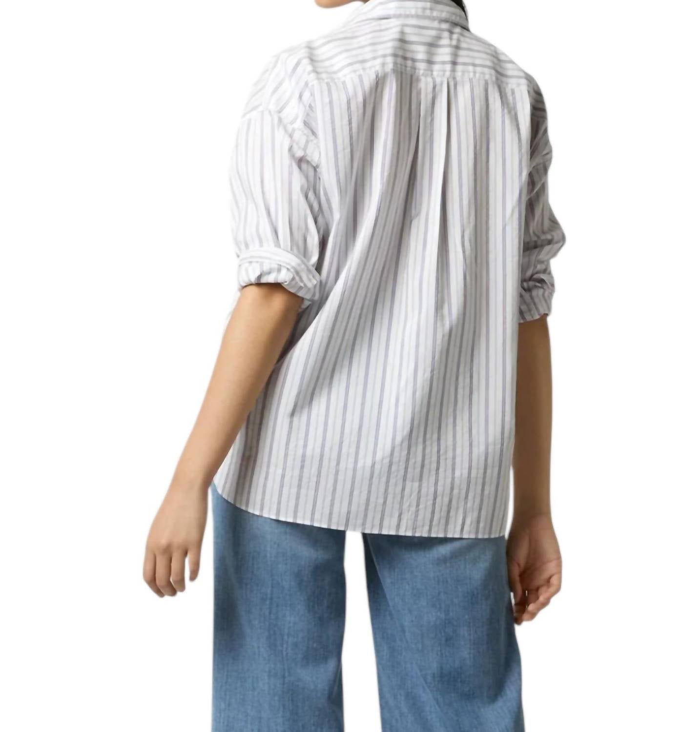 Свободный, заимствованный у мальчиков силуэт. Остроконечный воротник для классического вида. Передний карман для дополнительной детали. Легко облегает тело для удобства. Изготовлено из итальянского хлопкового шелка с разноцветными полосками. 52% хлопка, 48% шелка. Только сухая чистка.
