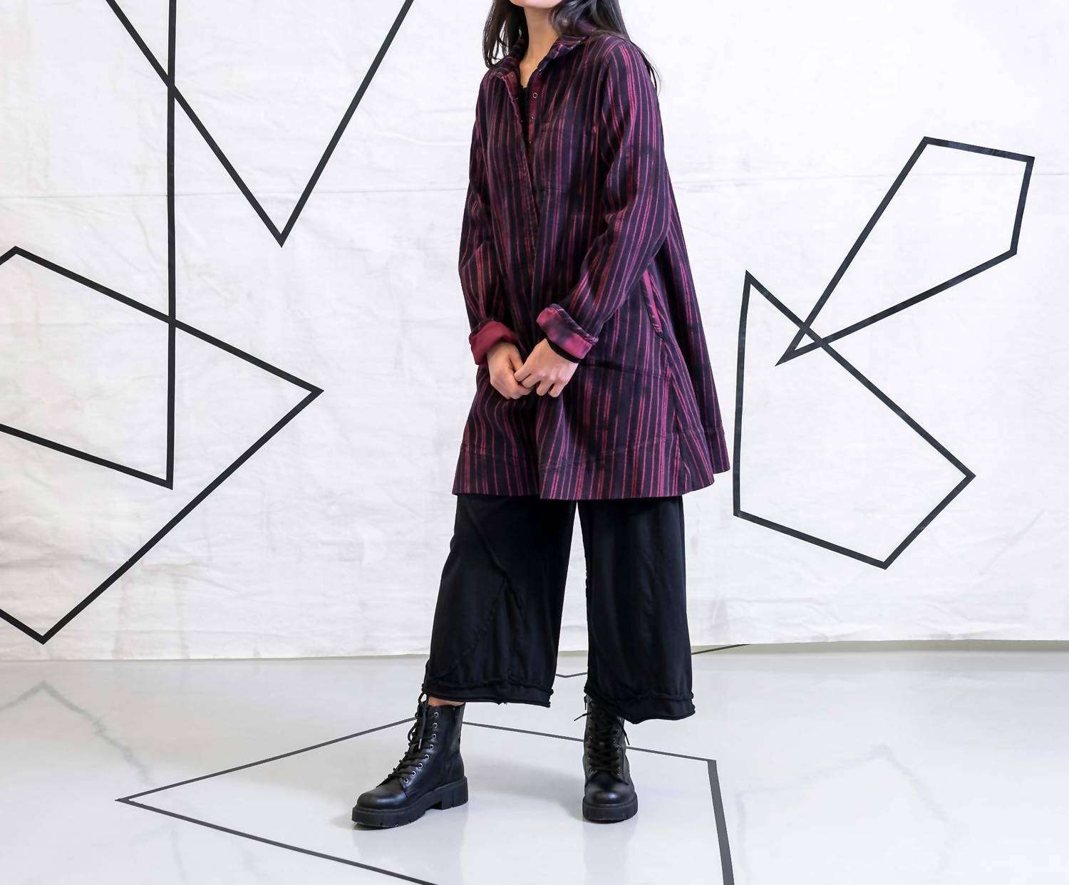 Эта двусторонняя куртка Abacus изготовлена из 100% хлопка и имеет воротник-стойку, скрытую застежку на кнопку и функциональные боковые карманы. Она предлагает полосатый рисунок с одной стороны и цветные секции с другой, идеально подходит для универсального стиля.