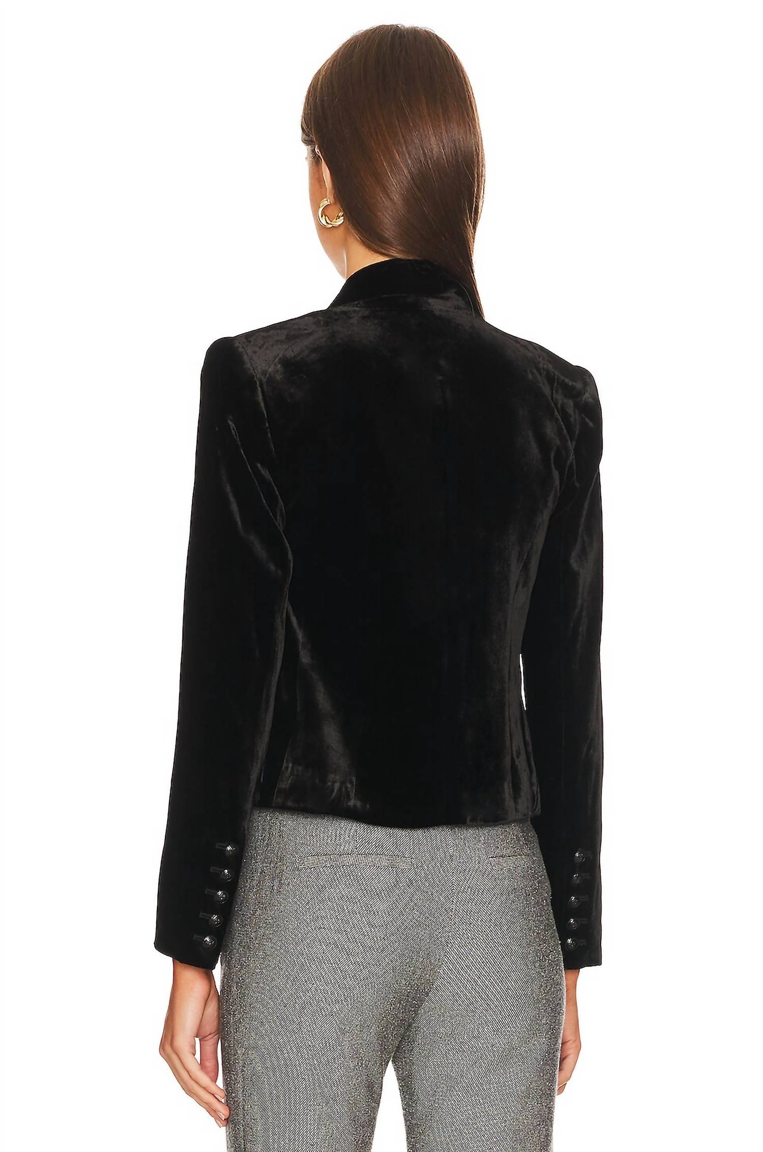Идеально сшитый, этот блейзер станет вашей любимой курткой на долгие годы. Застежка на пуговицы спереди. Мягкие плечи. Накладные карманы спереди. Манжеты на пуговицах. Бархатная ткань. Состав: 82% вискоза, 18% шелк. Подкладка: 100% полиэстер. Только сухая чистка. Рост модели: 5 футов 11 дюймов, на ней размер 2.