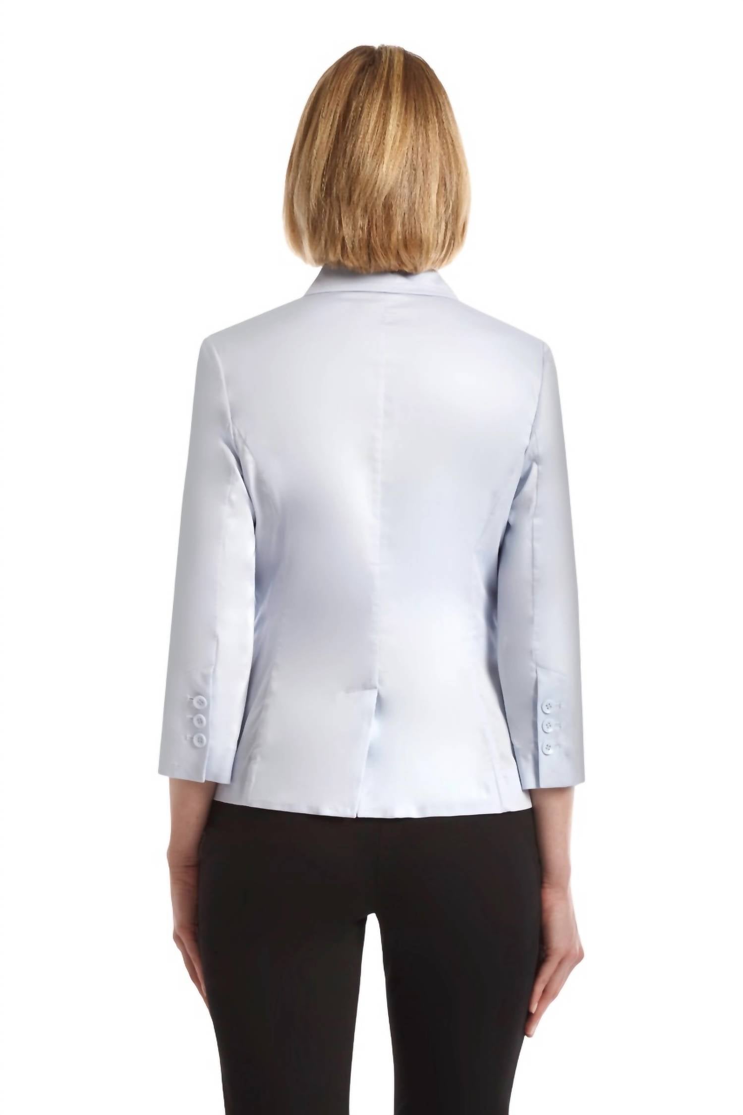 Трикотажный пиджак с рукавами 3/4. Рост модели 5 футов 9,5 дюймов, размер S. 94% хлопок, 6% лайкра. Машинная стирка в холодной воде, не отбеливать, сушить на горизонтальной поверхности, гладить при низкой температуре при необходимости или чистить в химчистке. Импортируется.