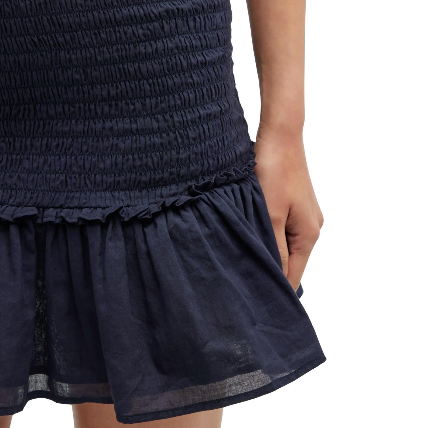 Идеальное мини-платье для теплых месяцев. Платье-футболка Veronica Beard Aberdeen. Мини-платье из хлопка темно-синего цвета. Юбка-бюстье с оборками и подолом. Лиф-блузон. Короткие рукава. Вырез горловины лодочкой. Юбка трапециевидной формы на подкладке. Длина (S) 36,2 дюйма. Длина рукава (S) 15,4 дюйма. Машинная стирка в холодной воде.
