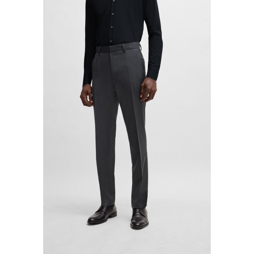 Строгие брюки от BOSS Menswear, прямого кроя, из шерстяной саржи средней плотности.