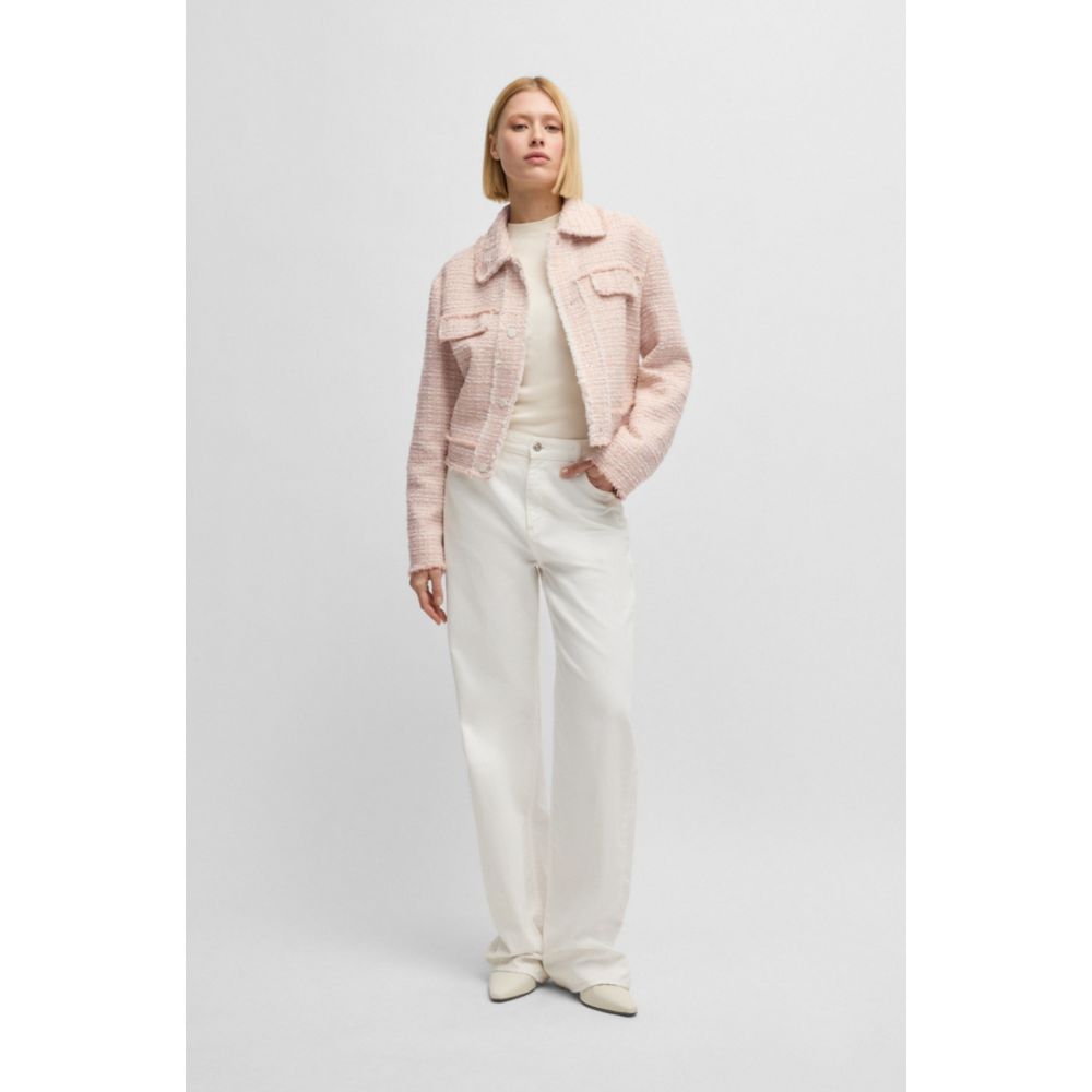 Идеально подходит для летних мероприятий, этот пиджак BOSS Womenswear имеет прямой крой. Свежий твид содержит хлопок и шерсть для мягкости.