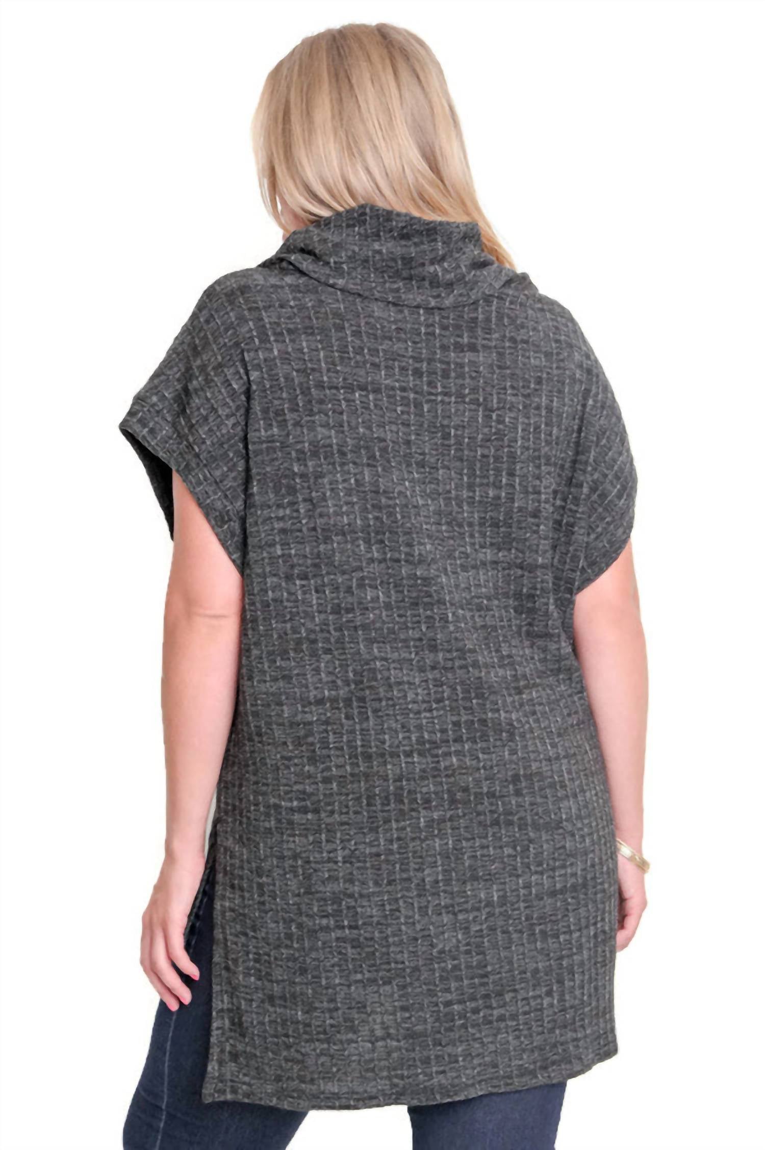 Легкий свитер-топ Cowl Neck. Короткие рукава, воротник-хомут, асимметричный подол и боковые разрезы.