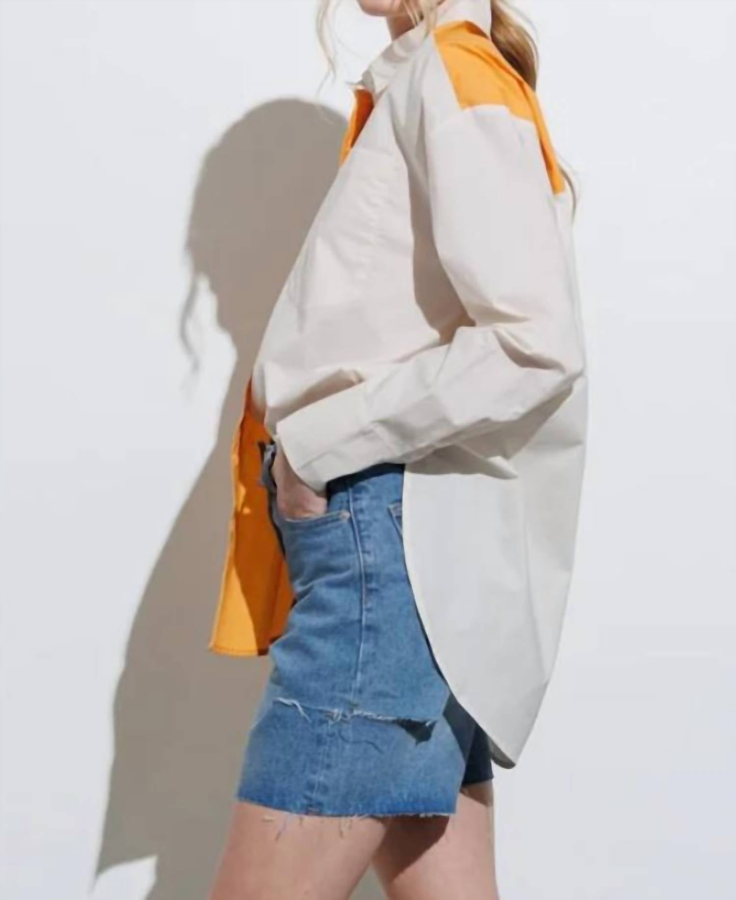 Классическая рубашка на пуговицах, которая никогда не выйдет из моды. * Свободный размер * Цветовые блоки * Передний карман * 100% хлопок. Стильно сочетается с джинсами, шортами или любимыми брюками. Очень универсальная модель, которую можно носить как на работе, так и по делам!