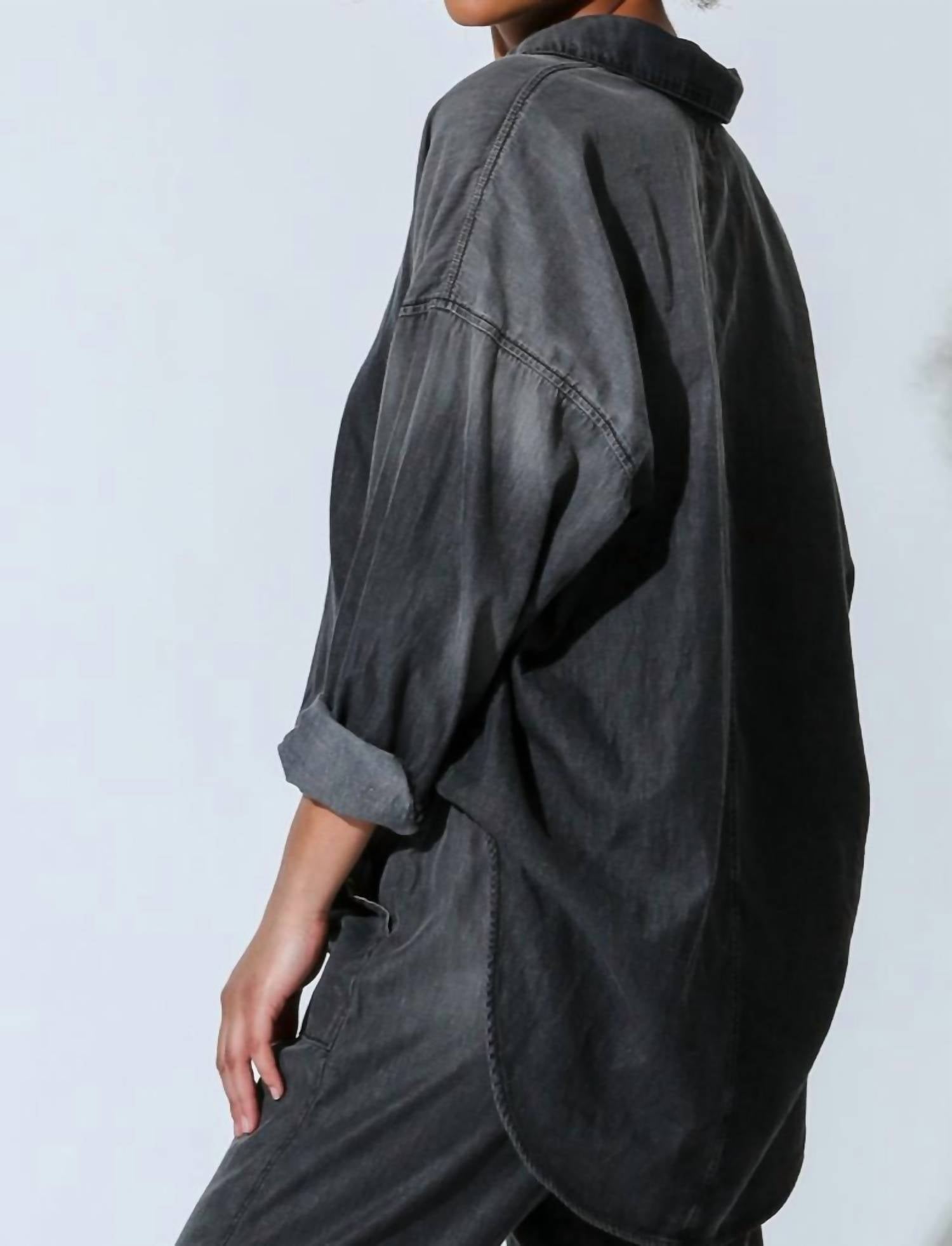 Застежка на пуговицы. Длинный рукав. Ткань - 100% расчесанный хлопок. Рост модели 5 футов 8 дюймов, размер S. Машинная стирка. Сушить в стиральной машине при низкой температуре. Сделано в США.