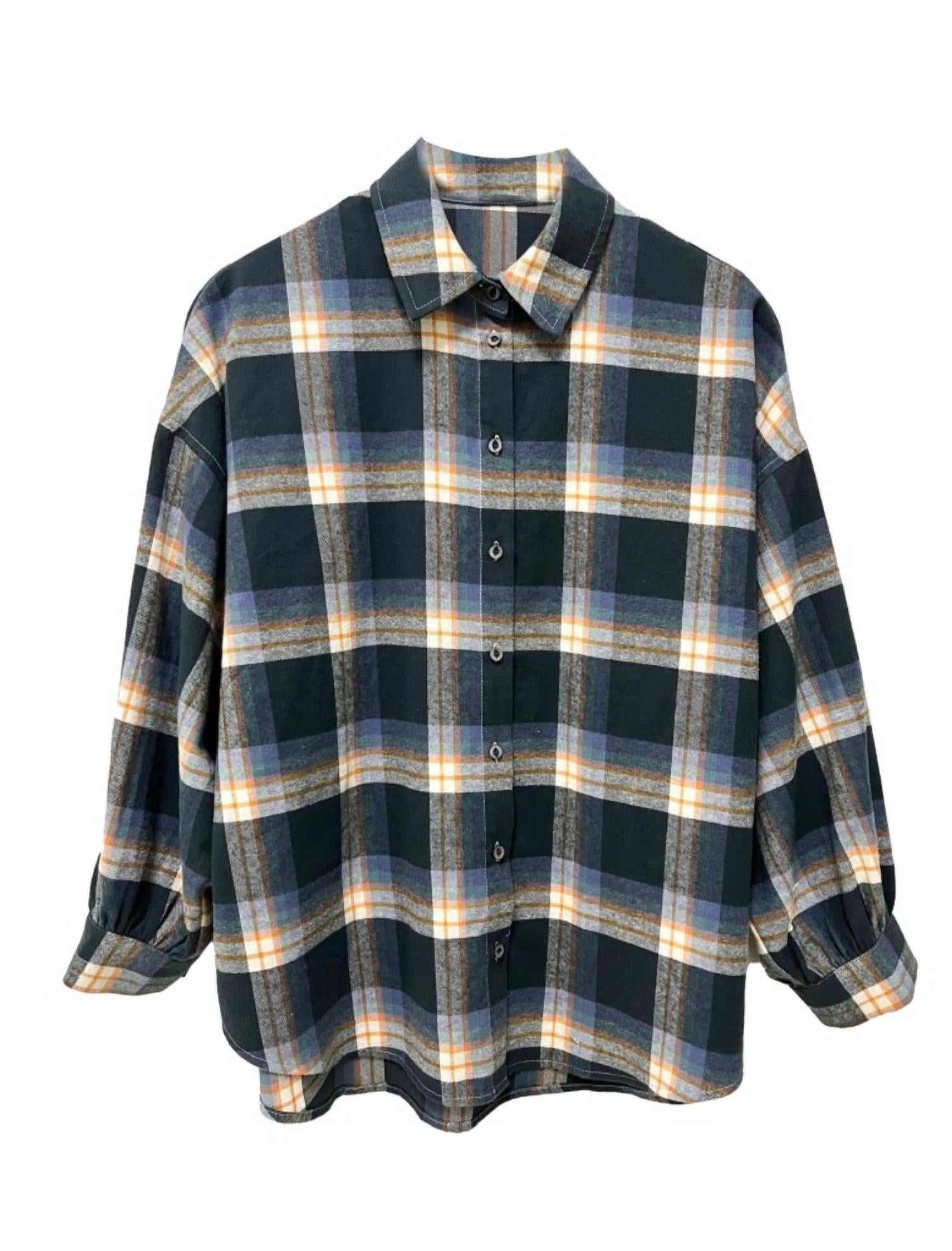 С воротником. Рубашка свободного кроя из красивой клетчатой фланели с длинными рукавами из 100% хлопка.